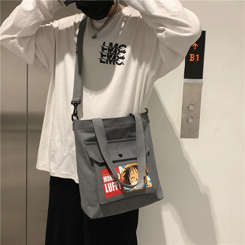 Large-capacity canvas bag student men's supplementary school bag 2022 new Japanese design messenger bag shoulder bag handbag