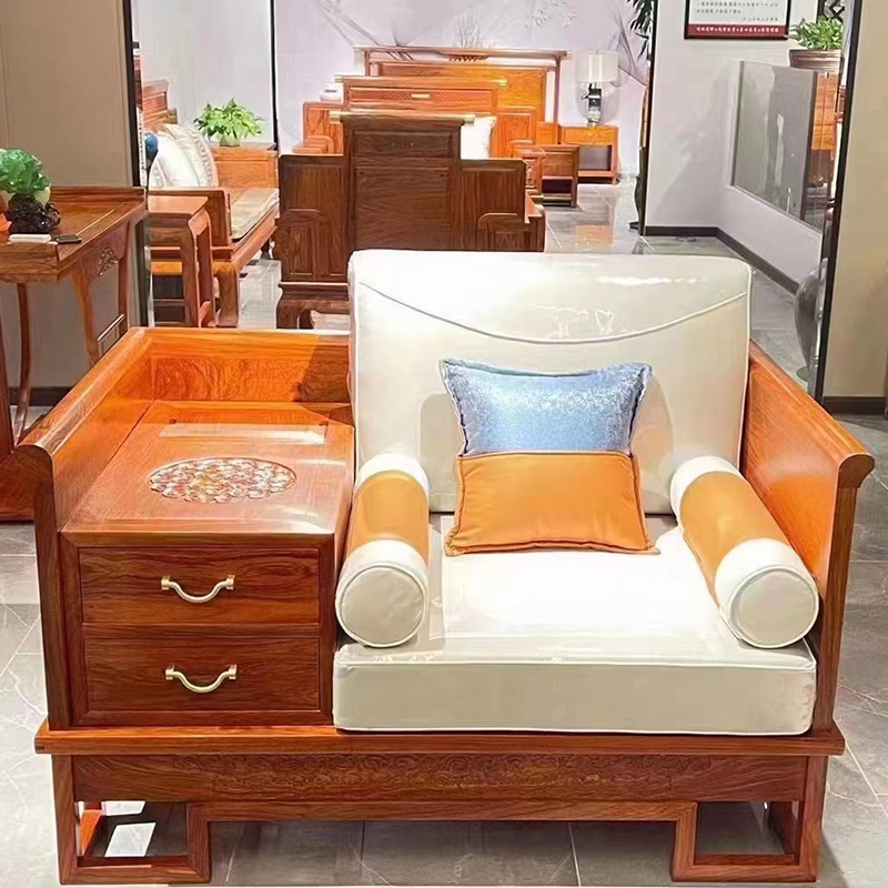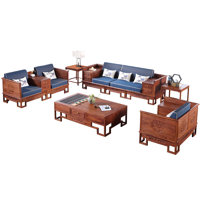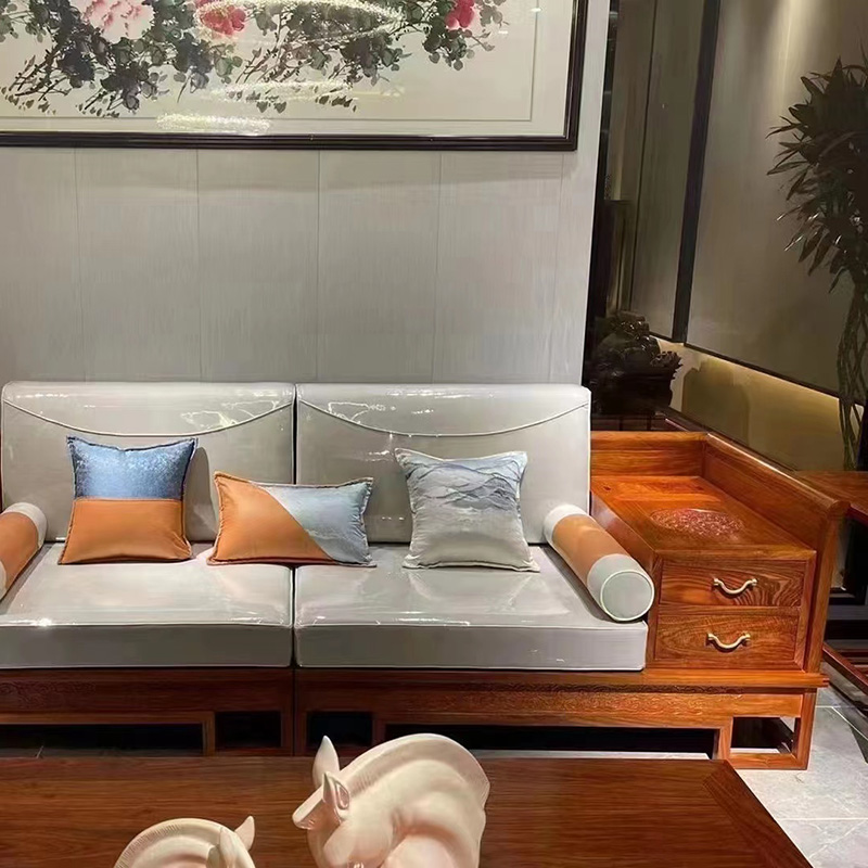 A luxury solid wood furniture mahogany hedgehog red sandalwood new Chinese box villa Dapingshu soft sofa living room combination