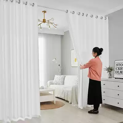 Gauze white yarn curtain rod curtain rod curtain a complete set of hole-free installation transparent transparent screen 2021 New