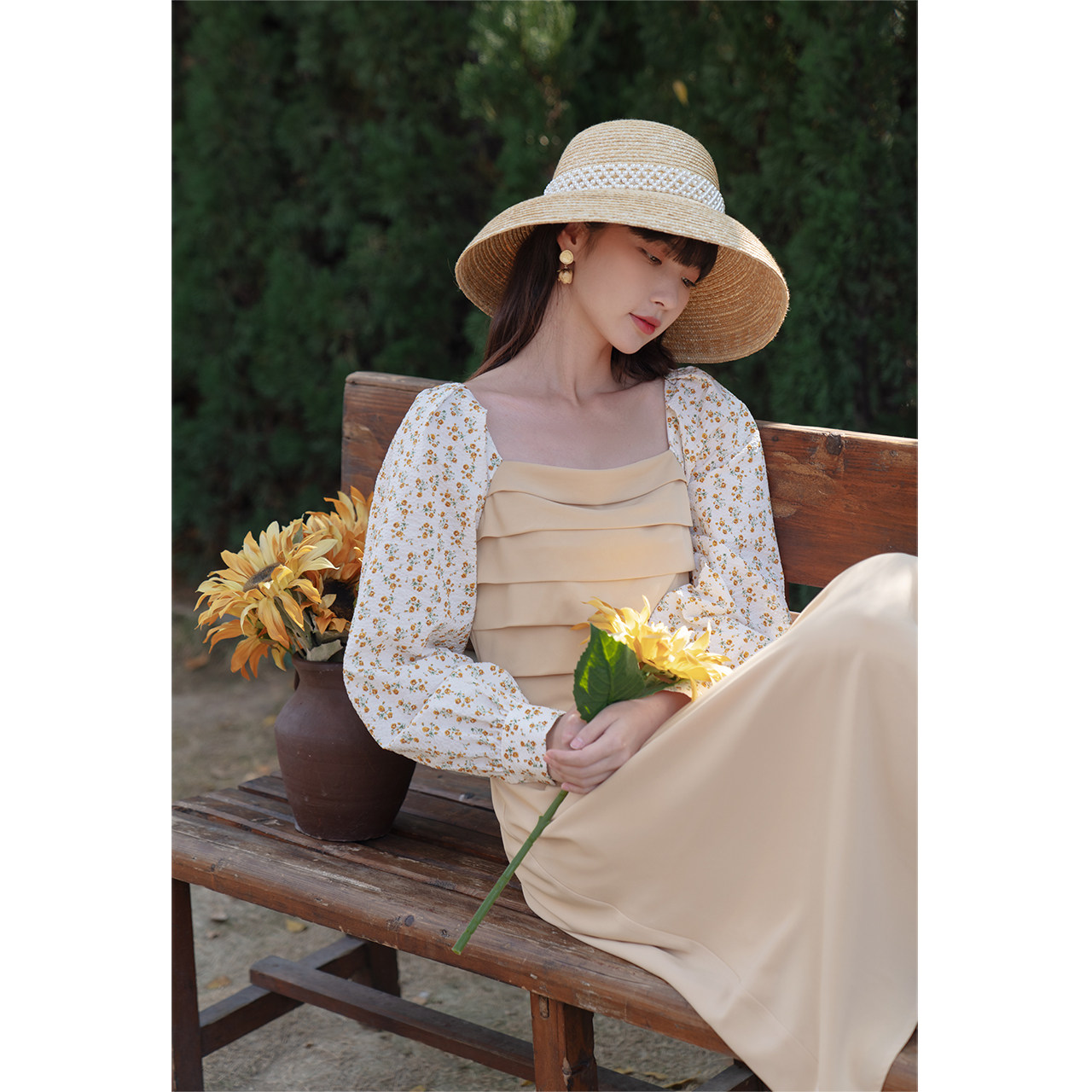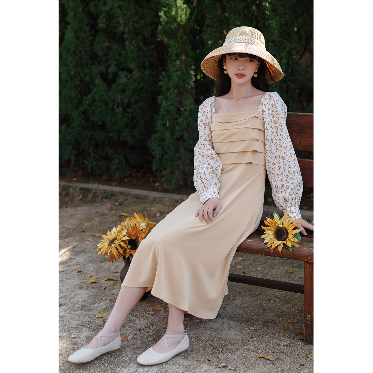 Deer to the south collar dress 2022 new spring and autumn temperament style collection and waist splicing design feeling small crowddress