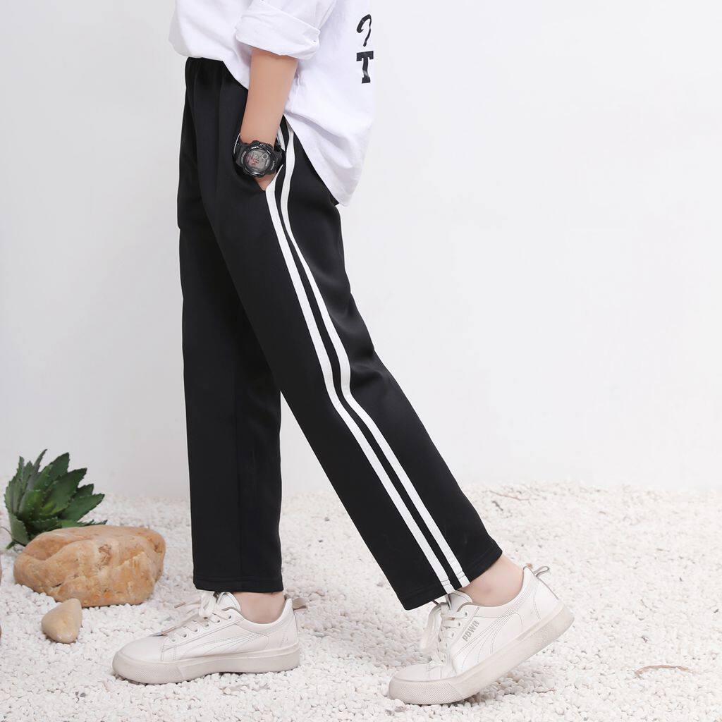 School uniform pants two bars male and female pupils sports pants double bars white side two bars blue straight junior high school pants