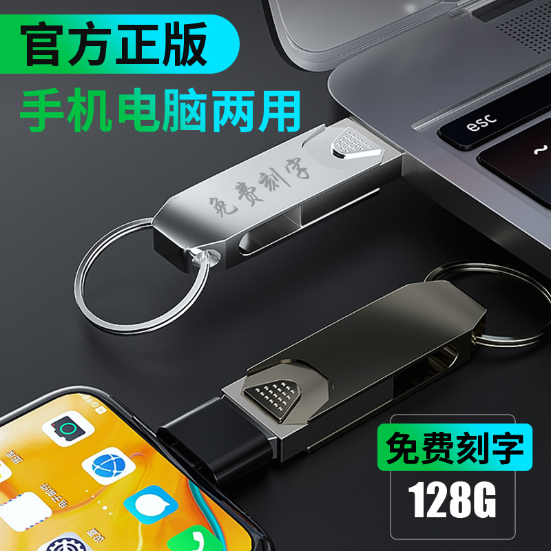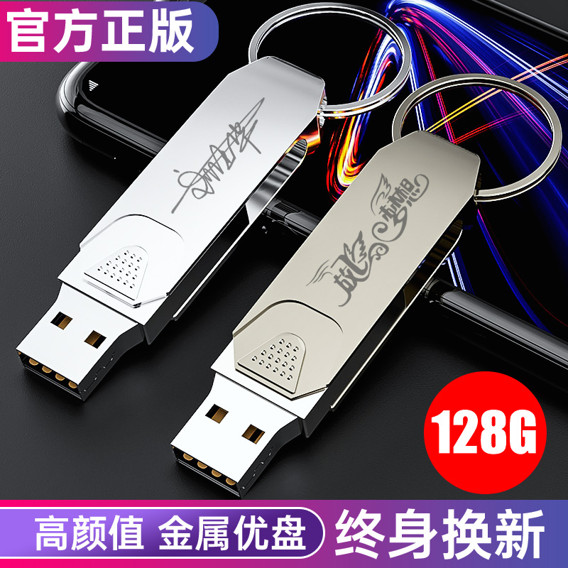 (Official genuine) high-speed metal U disk 128G mobile phone computer dual-use student mini custom lettering USB flash drive car flash memory USB boys and girls songs vibrato 128g flash drive