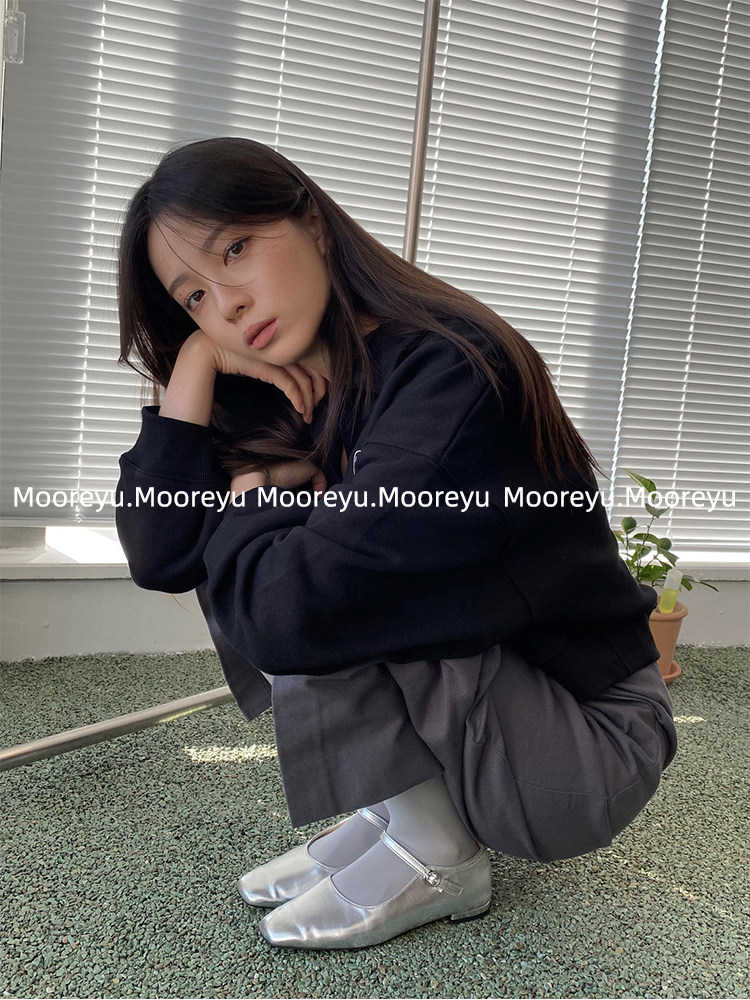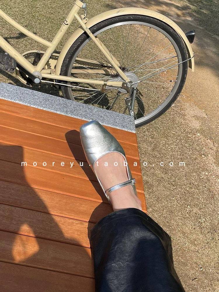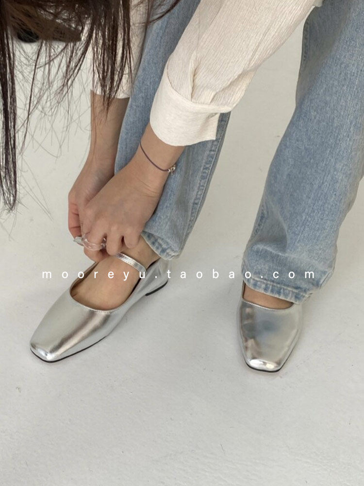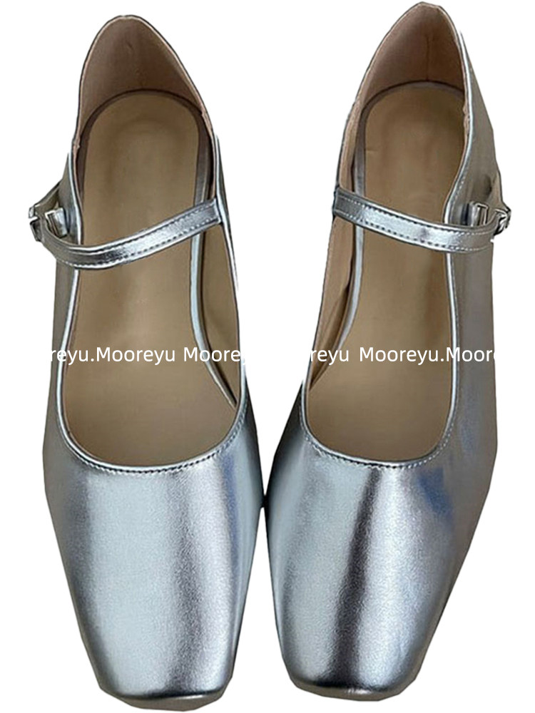 mooreyu spring soft bottom retro coarse heel square head mary precious shoes French flat bottom silver single shoes woman 2023 new