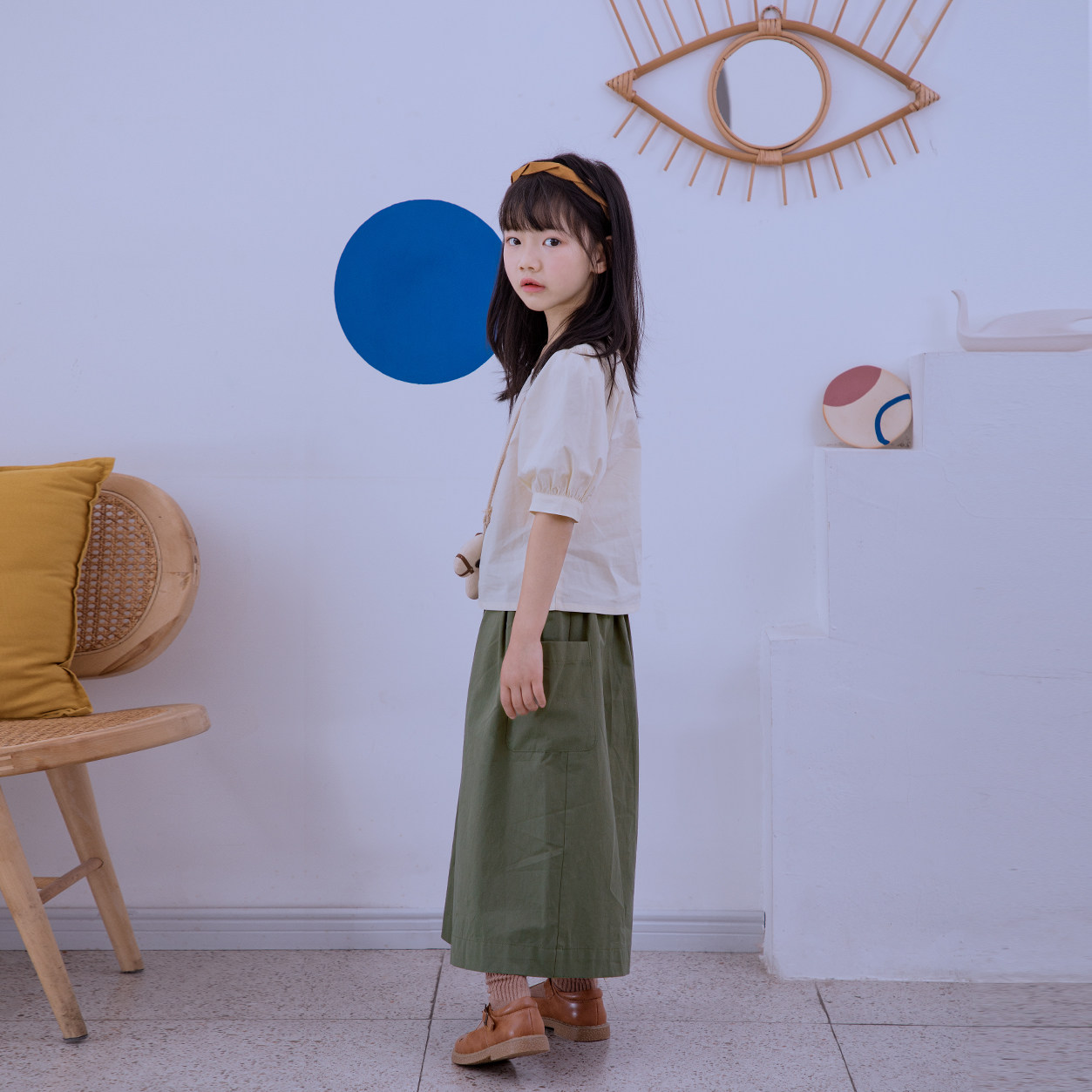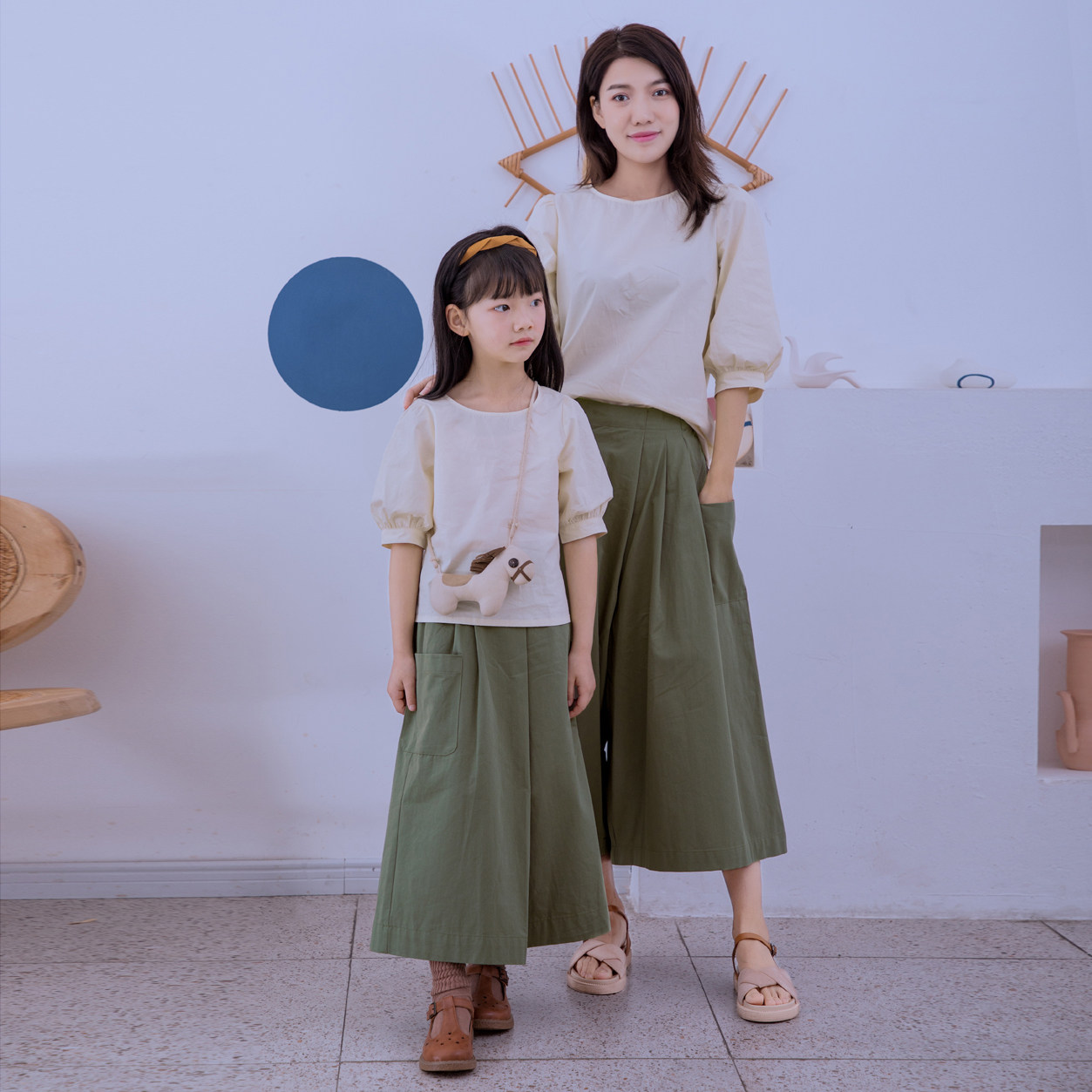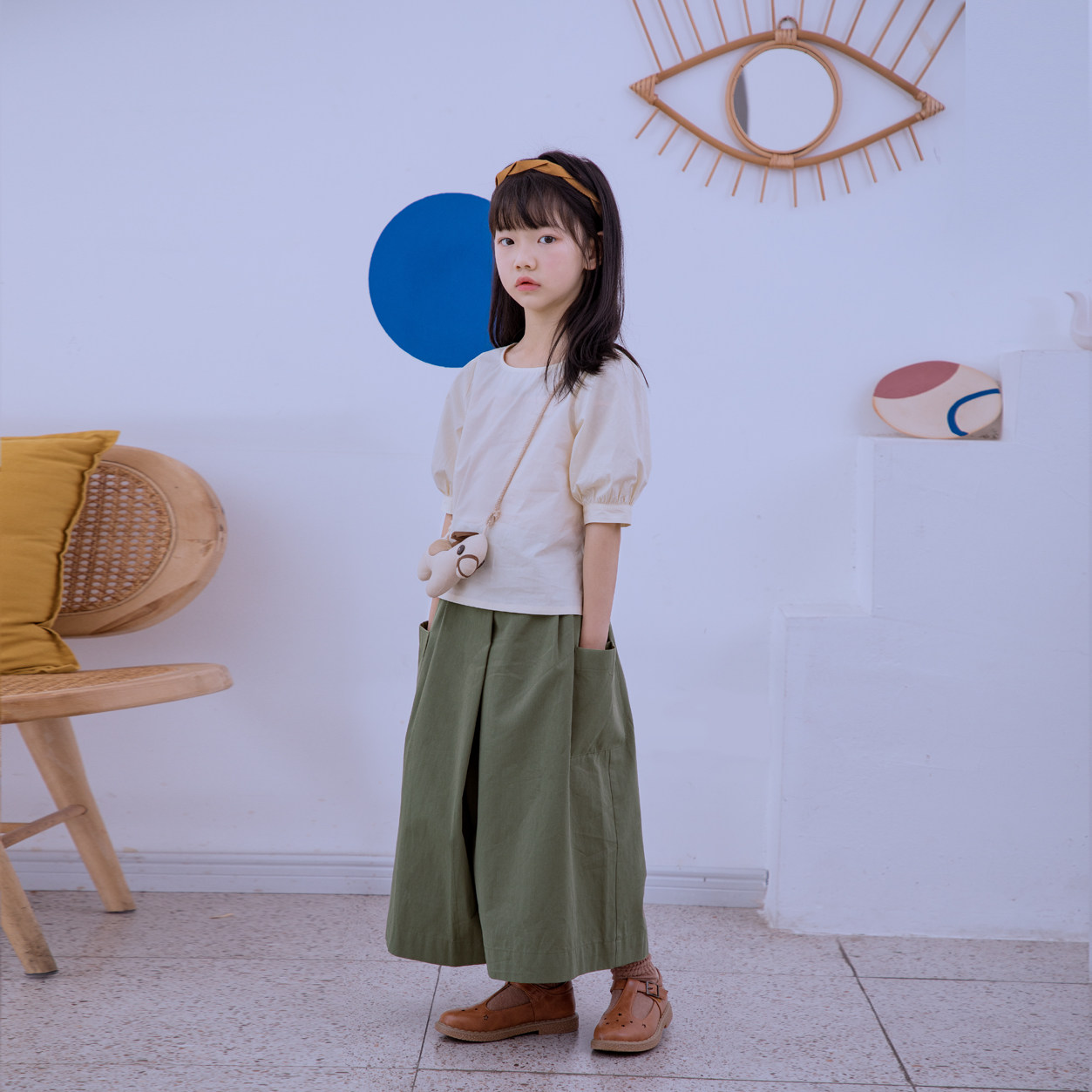 Beige Doll Sweatshirt Green Straw Green Skirt Pants Doll Dress Pants Suit