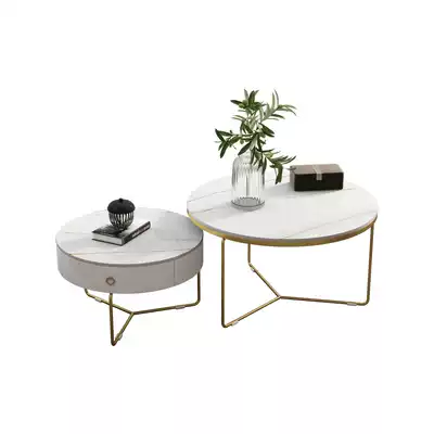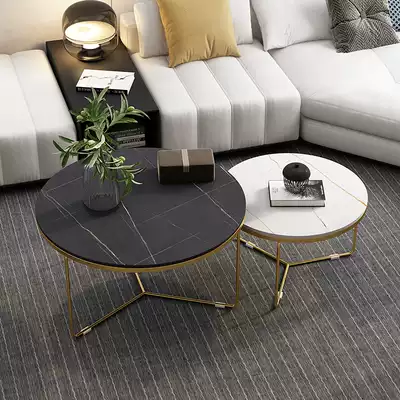 Modern simple Italian light luxury Rock Board coffee table living room household small flat round tea table marble coffee table side