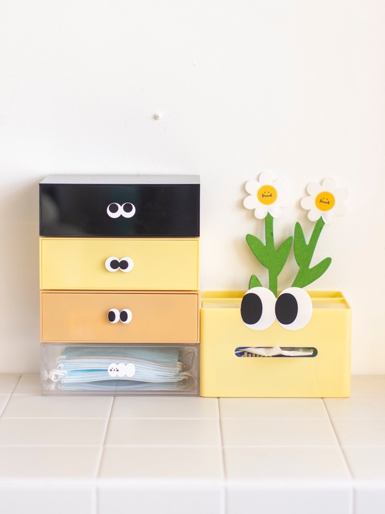 MSS Meow Warlock Desktop Multifunctional Acrylic Mask Drawer Storage Box Organize Stationery Tools Japan