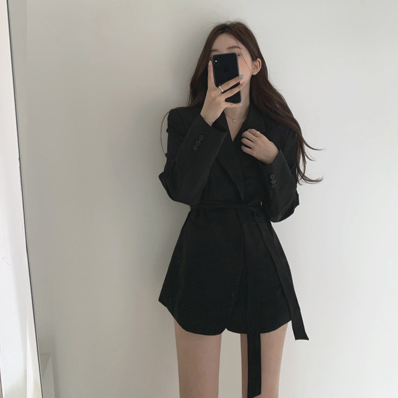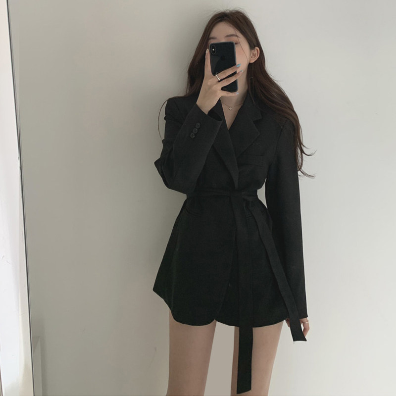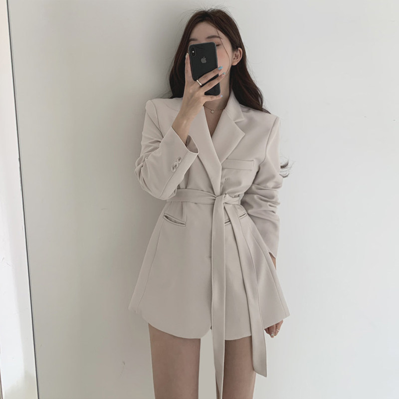 Suit women in autumn 2021 new belt small suit jacket goddess fan commuting loose leisure medium and long version