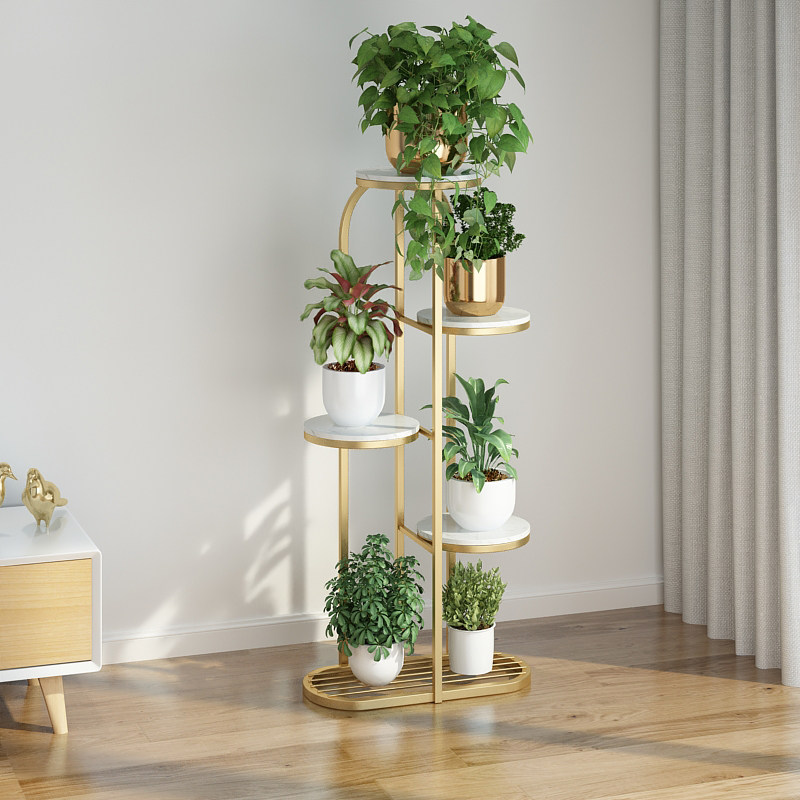 Living Room Floor Type Flower Shelf Iron Art Small Space Balcony Multilayer Shelve Room Modern Minima Gold Gross Flower Pot Shelf