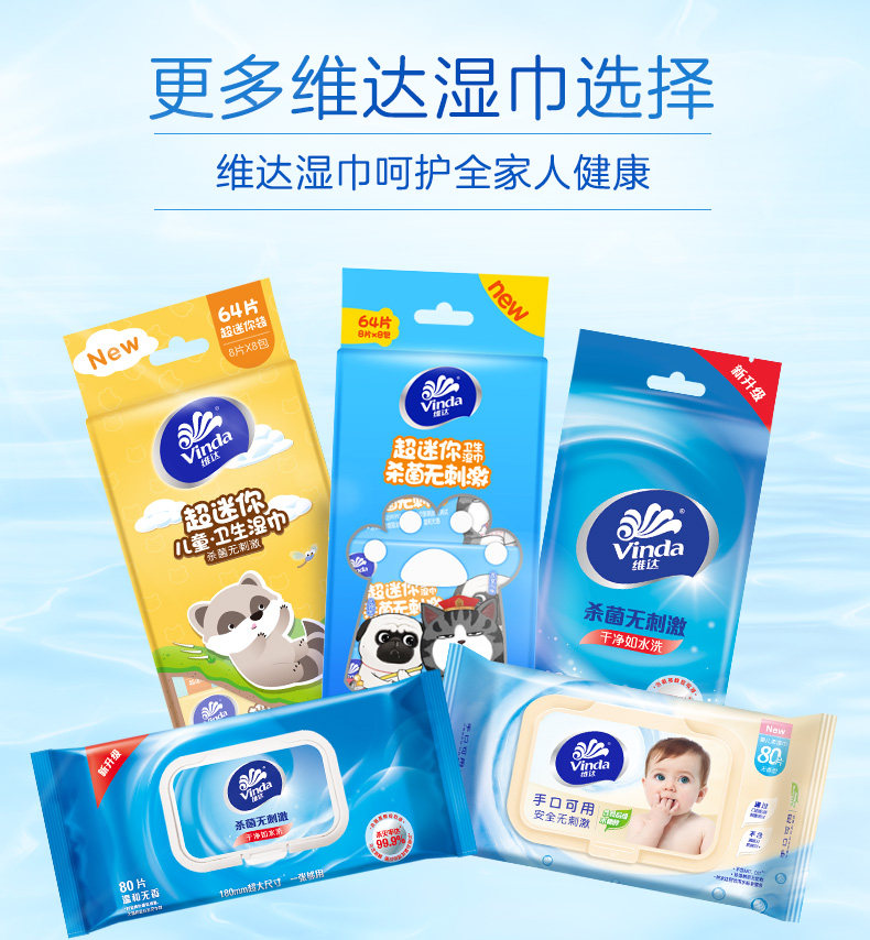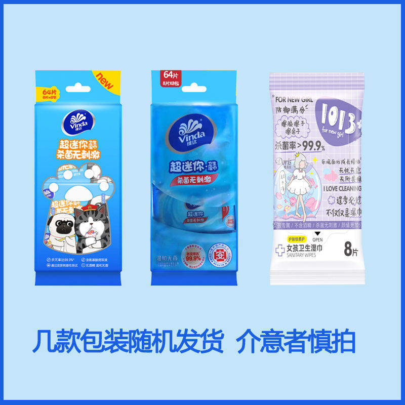 Vida Wet Wipes Ultra Mini Carry-on 8 slices 24 Bauteurized without irritating children Sterilized Packets Wet Wipes big packaging