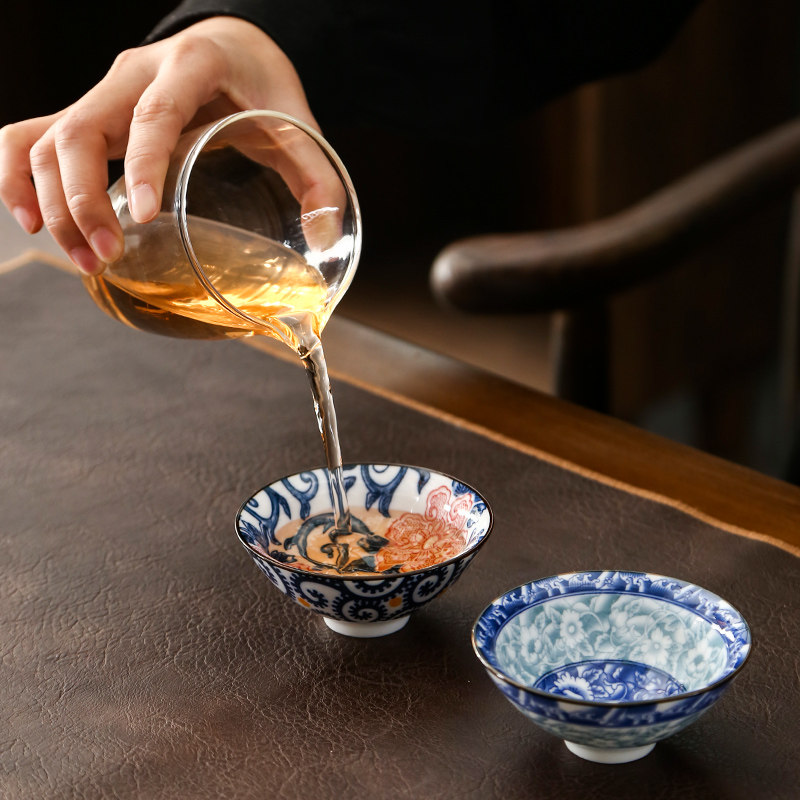 Tea cup Blue and white porcelain Jingdezhen handmade large Vintage Chinese underglaze color tea cup master tea cup tea bowl ceramics