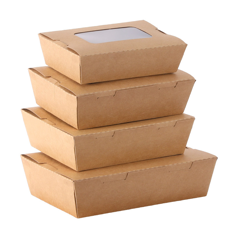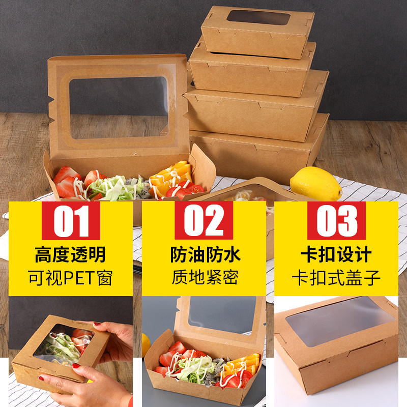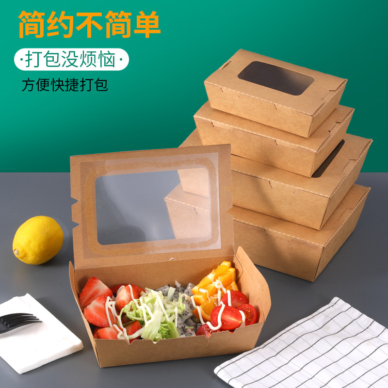 Kraft paper lunch box fruit salad carton with skylight window takeaway packaging box chicken fries box