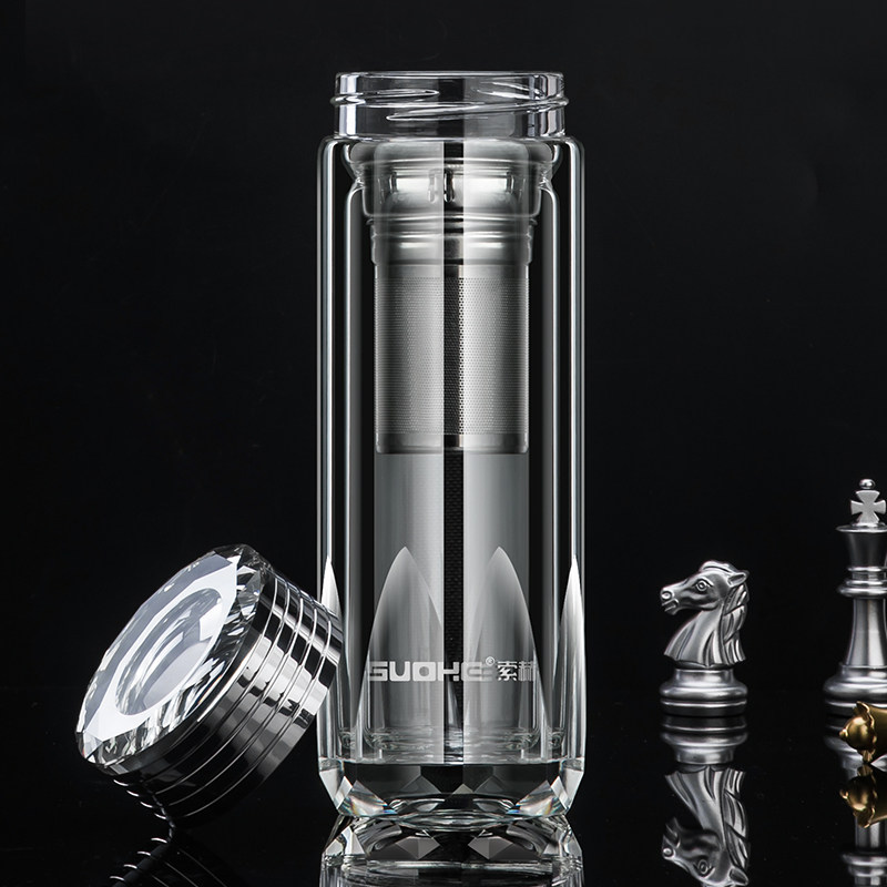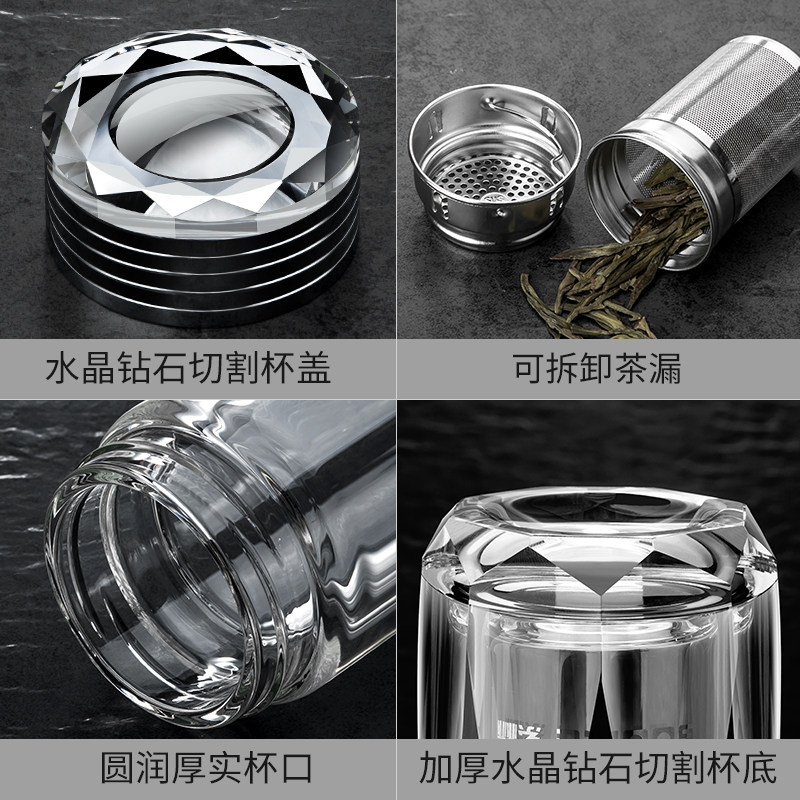 German Diamond Cup High-end Thermal Insulation Glass Mug Tea Water Separation Bubble Tea Cup Business Water Glass Gift Customisation