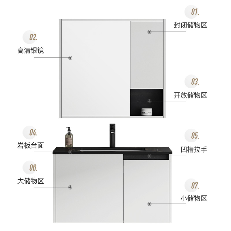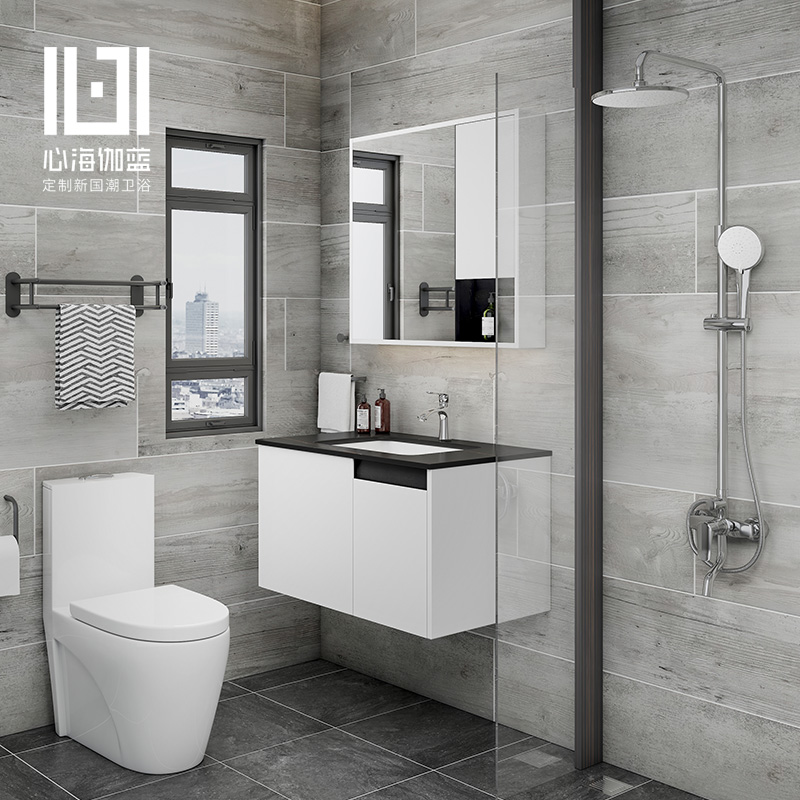 Heart Hyga Blue Rock Board Integrated Basin Bath Cabinet Modern Minimalist Washbasin Cabinet Combined Wash-Face Wash Dresser Dresser