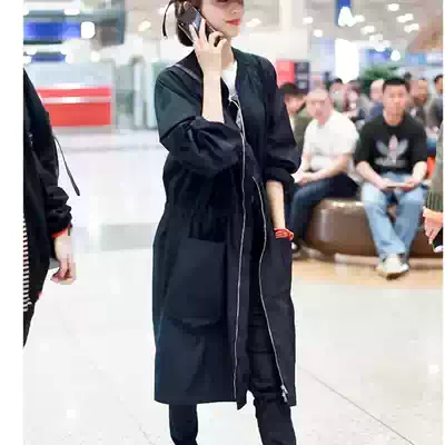 Tong Liya star same 2021 early autumn new thin loose casual baseball uniform long version of the windbreaker coat women
