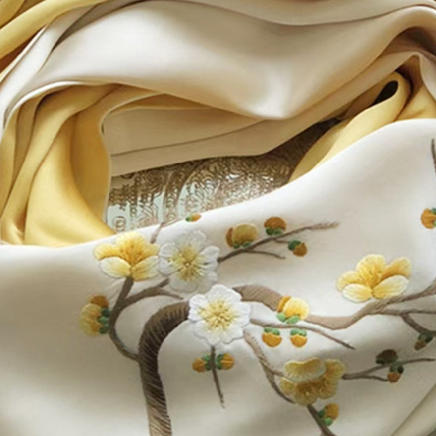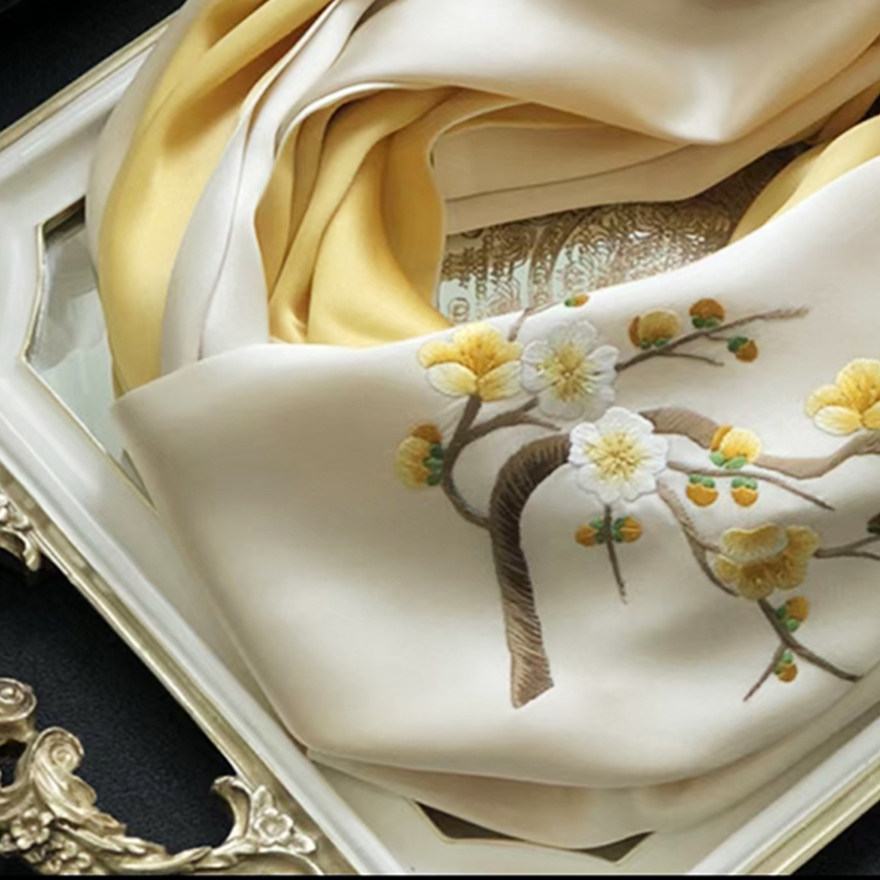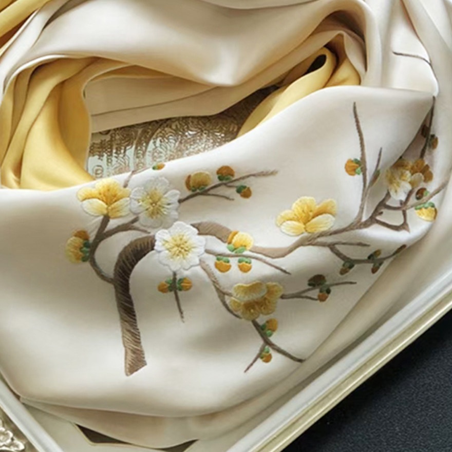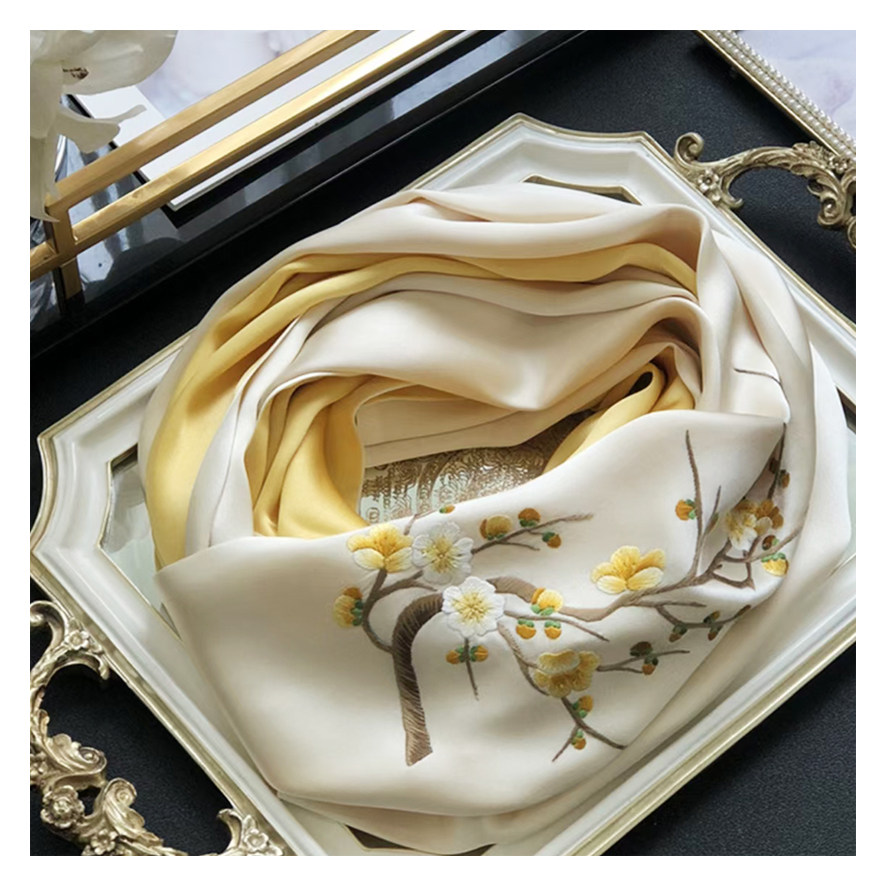 Pure Hand Embroidered Mulberry Silk Scarf < Gold Mei News Letter > Warm gift embroidery