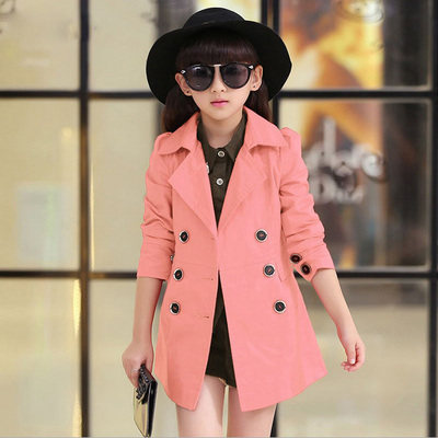 Korean version of the girls' trench coat medium long 2021 spring and autumn new style foreign children's middle and older children plus fleece jacket cardigan jacket