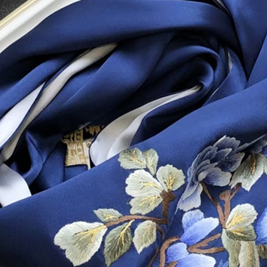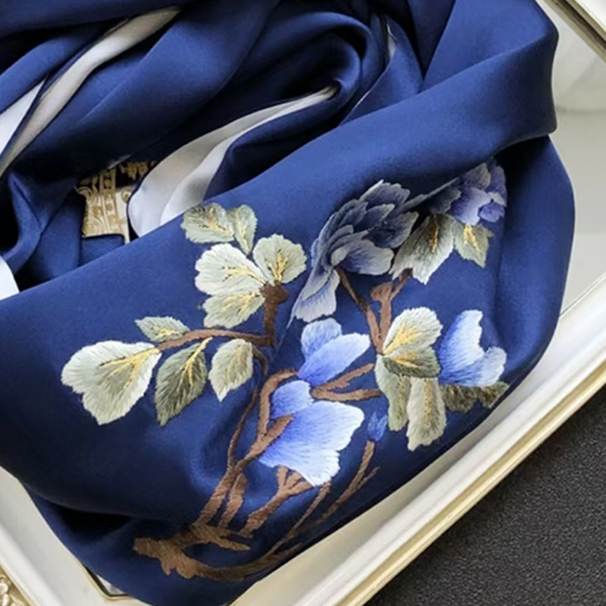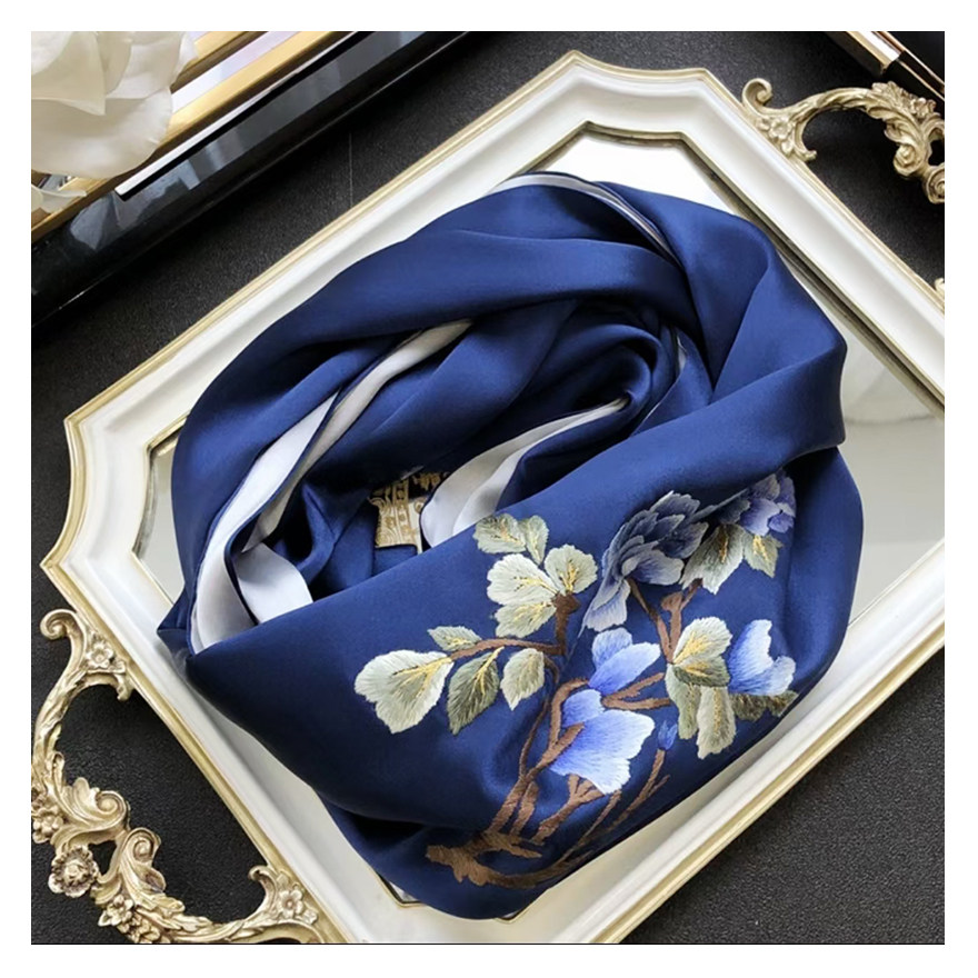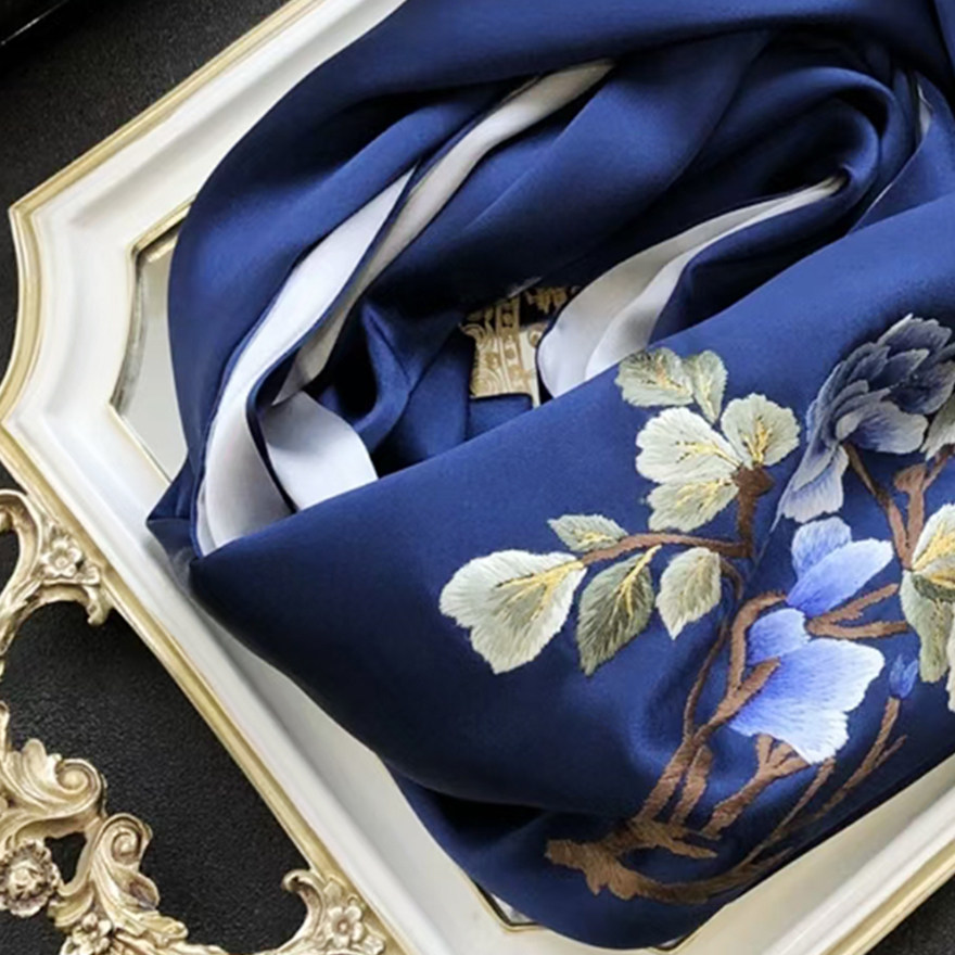 Pure hand-embroidered mulberry silk scarf "Blue Stream Water Permeable" warm gift embroidered silk