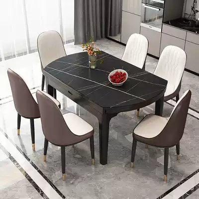 Rock board dining table modern simple retractable small apartment household solid wood round rice table light luxury dining table and chair combination