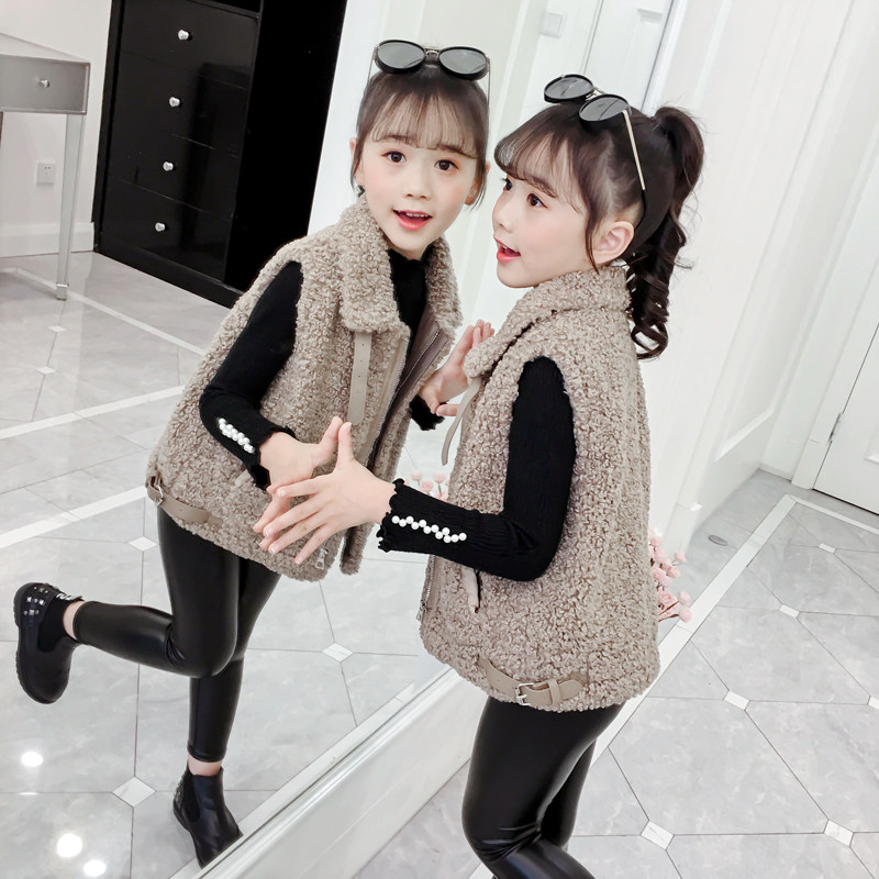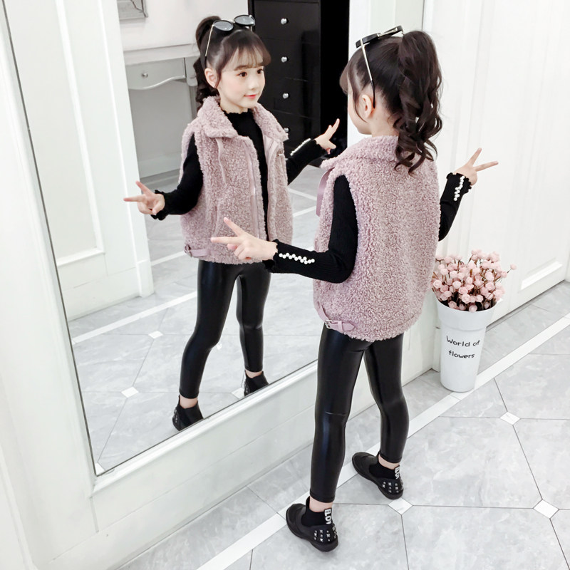 Girls' vest 2022 spring new Korean version of the Western style medium and large children's clothing girl lamb velvet vest outer wear vest