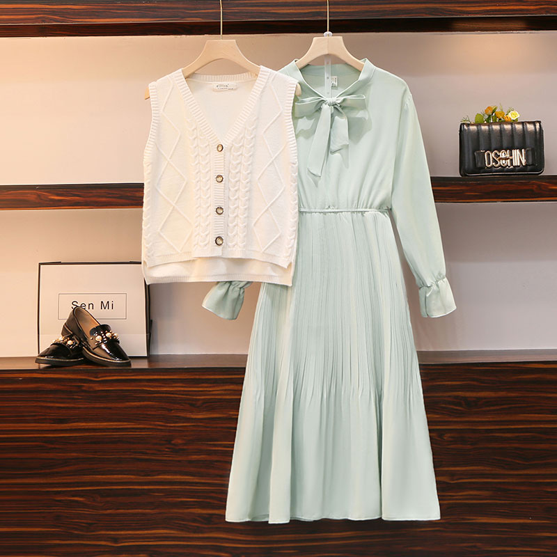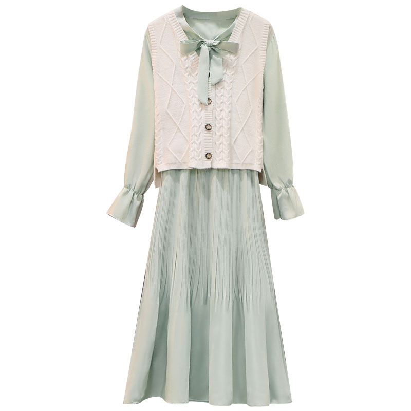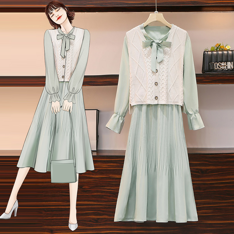 Early autumn Small Temperament Ladies Skirt Two-piece Style Suit This Year Pop-in-the-weaseled Machia matching shirt Ocean dress