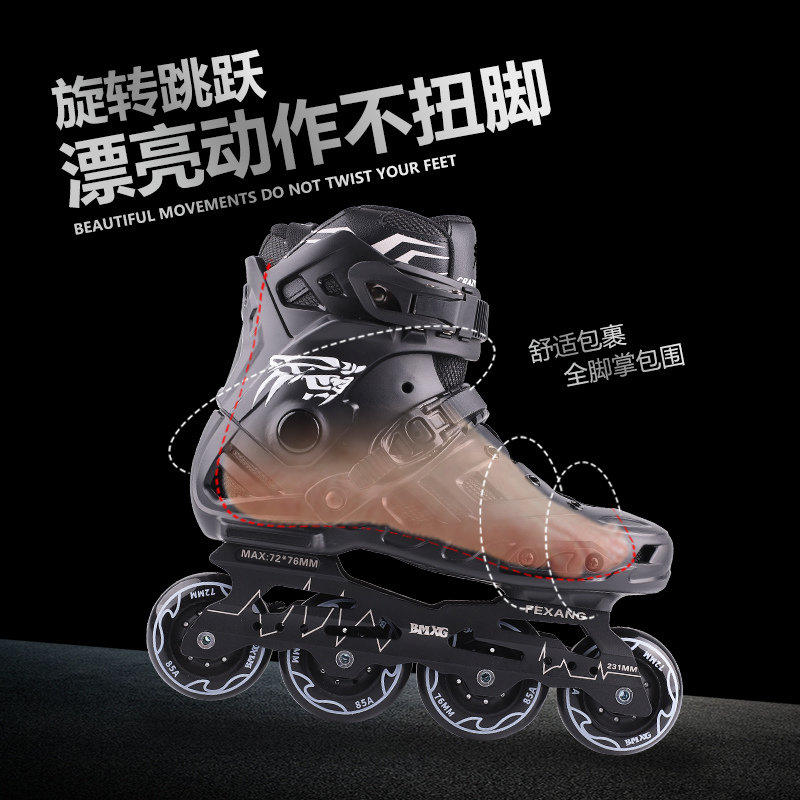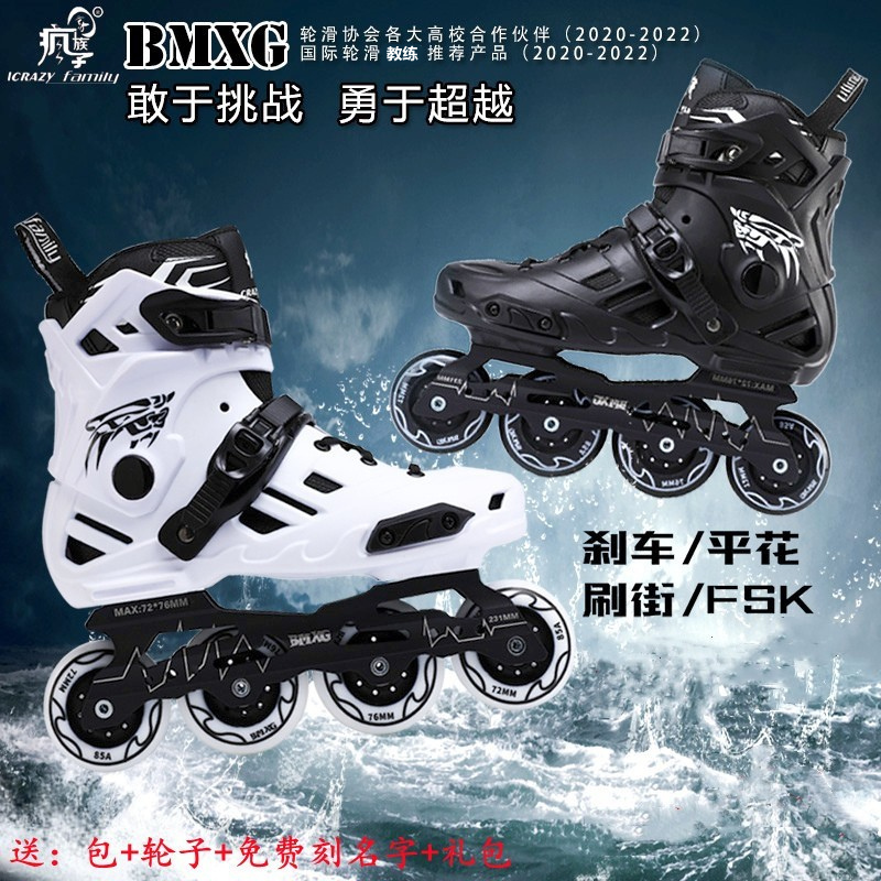 Crazy Family Professional Wheels Skating Shoes Adults Flat Flower Shoes Male and female Fancy Skates Straight Rows of Brake Shoes for college students
