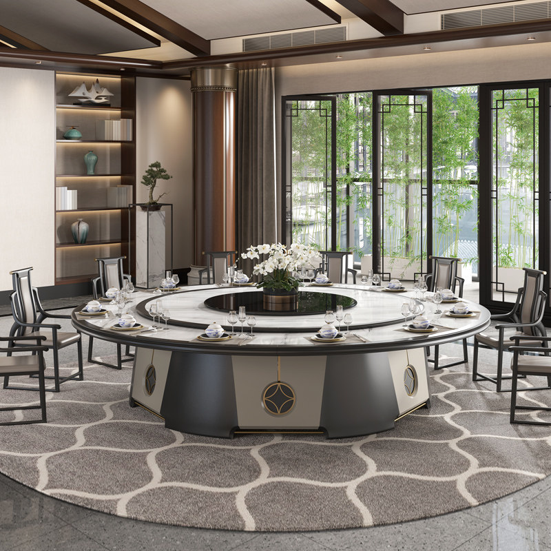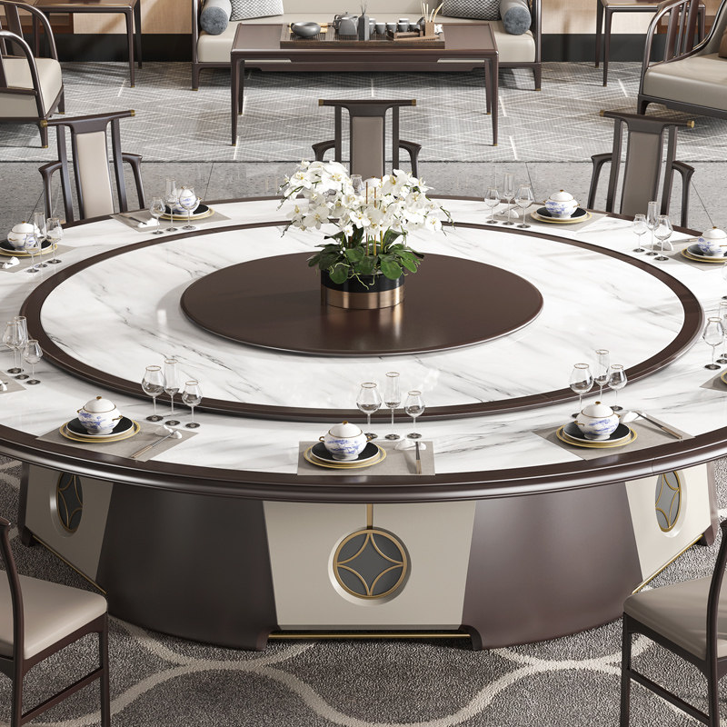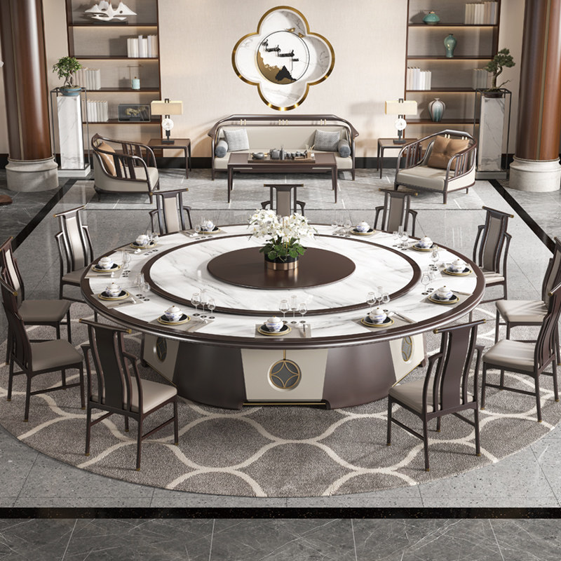 Golden Giant new Chinese hotel electric large round table Marble rock plate dining table Commercial hot pot table Induction cooker one