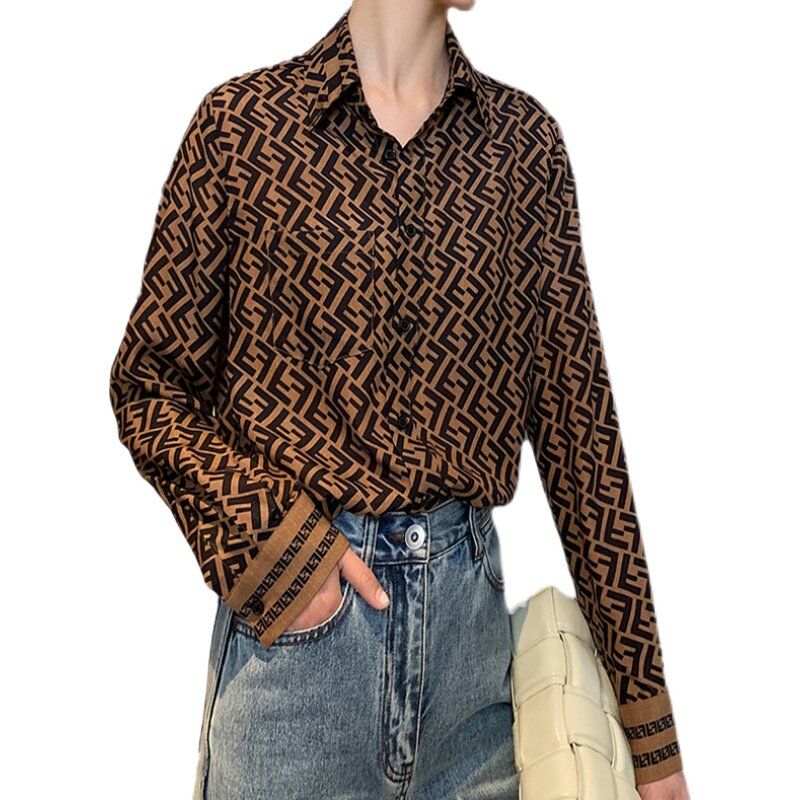 Mapping * Hong Kong light luxury women's new fashion wild letter mulberry silk long sleeve temperament silk shirt