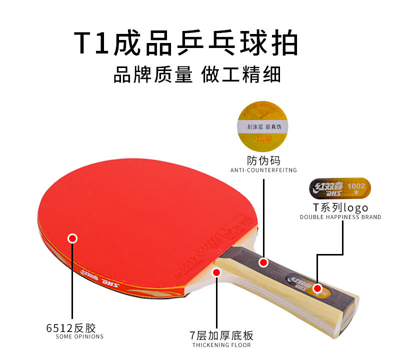 Double Happiness table tennis racket one star 1 star T1002 T1006 rubber straight shot horizontal shot with long handle and short handle