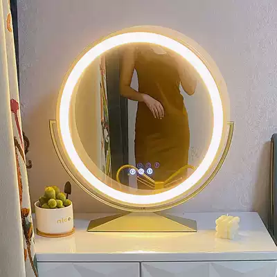 Rotating round high-definition smart mirror with light makeup mirror desktop LED light big desktop vanity mirror full of net red