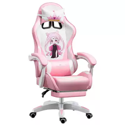 Home sedentary comfortable backrest computer chair can lie down game live video sports chair girl's pink anchor chair chair