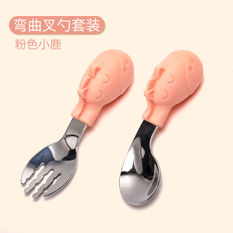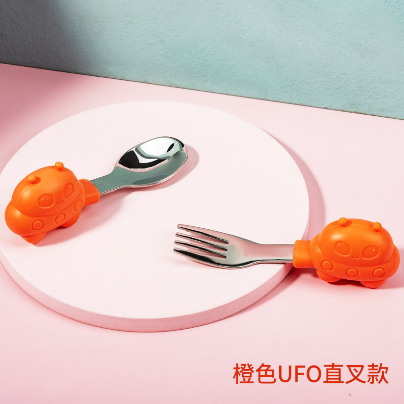 Stainless steel short handle spoon fork baby to learn to eat spoon baby tableware training auxiliary eating artifact kit