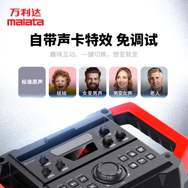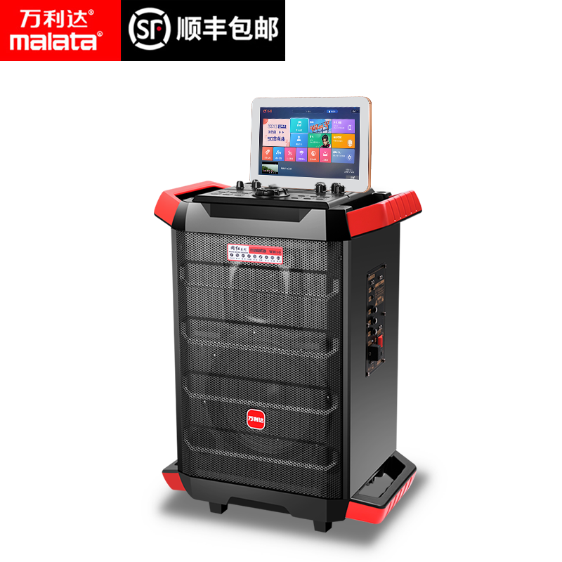 Malata Wanlida 9810 Net Red Audio Outdoor Live Built-in Sound Card Square Dance Display Pull Rod K Song With Wireless Microphone High Power Mobile Portable Bluetooth Speaker Bass