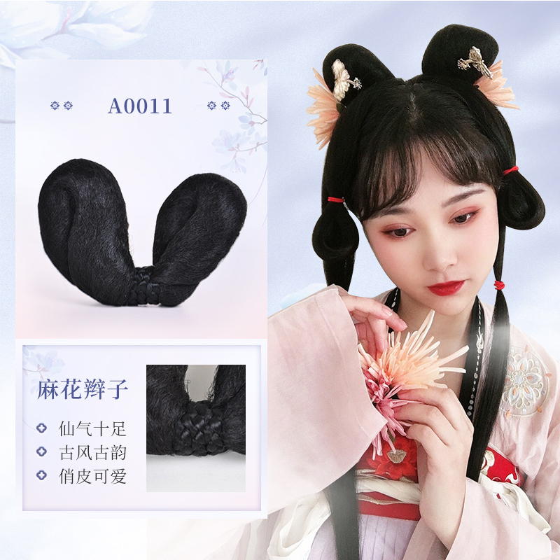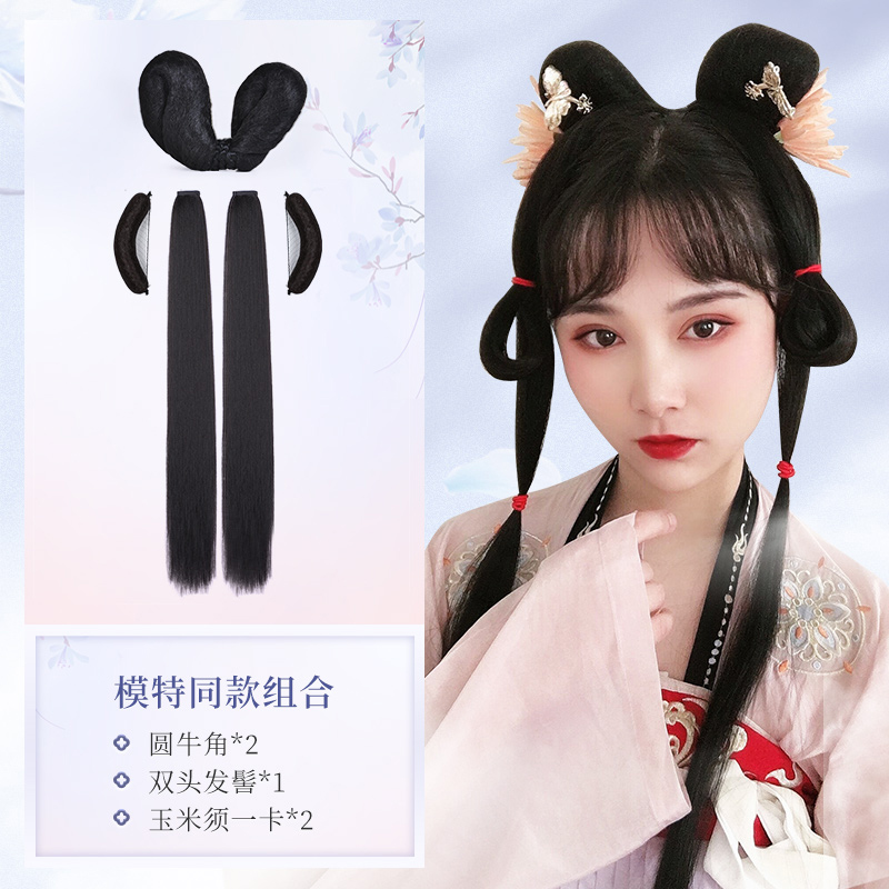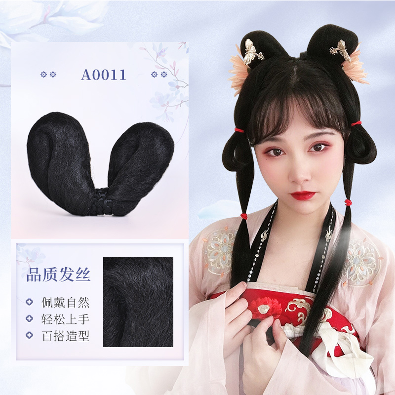 Ancient style Hanfu long song line film and television drama with the same wig can be bent double hair bun cute Tang style wig bag