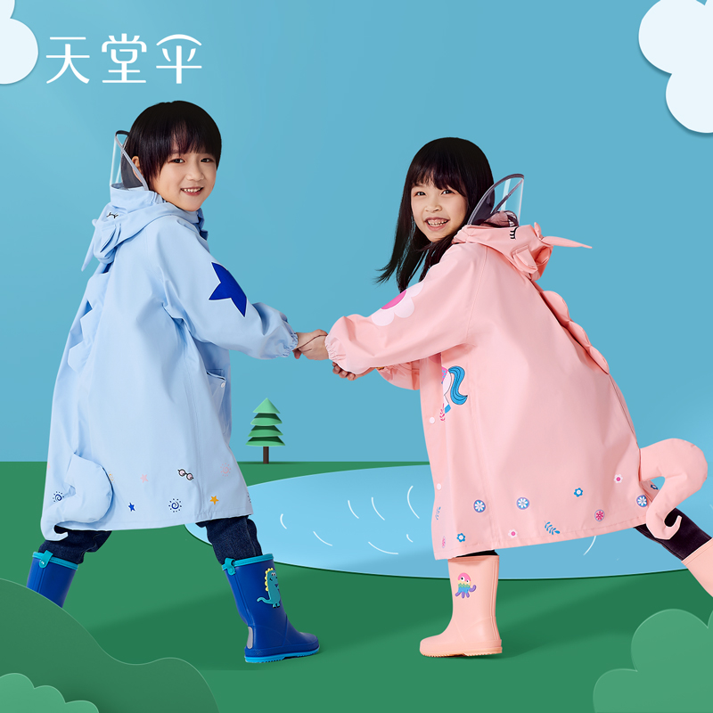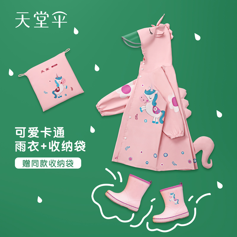 Paradise brand small children raincoat girl toddler primary school student full body one-piece poncho boy with school bag seat poncho