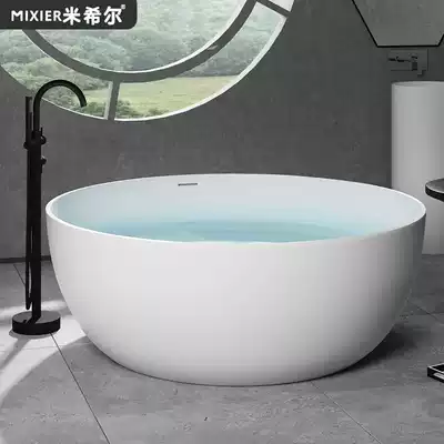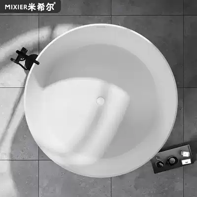 Round artificial stone bathtub household small apartment double couple bath tub detached homestay hotel bath adult