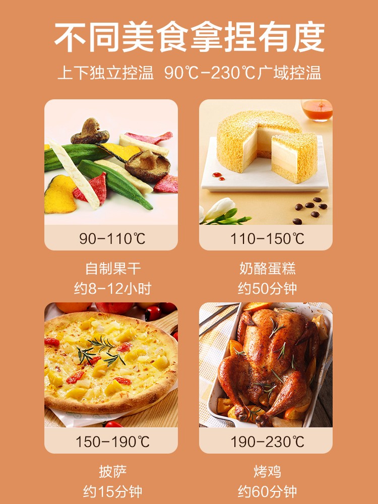 K42 40 l up and down independent control temperature K1H 32 liters independent control temperate baking fork K41 40 liters up and down independent control temperature K12 32 liters up and down unified control temperature GT10B