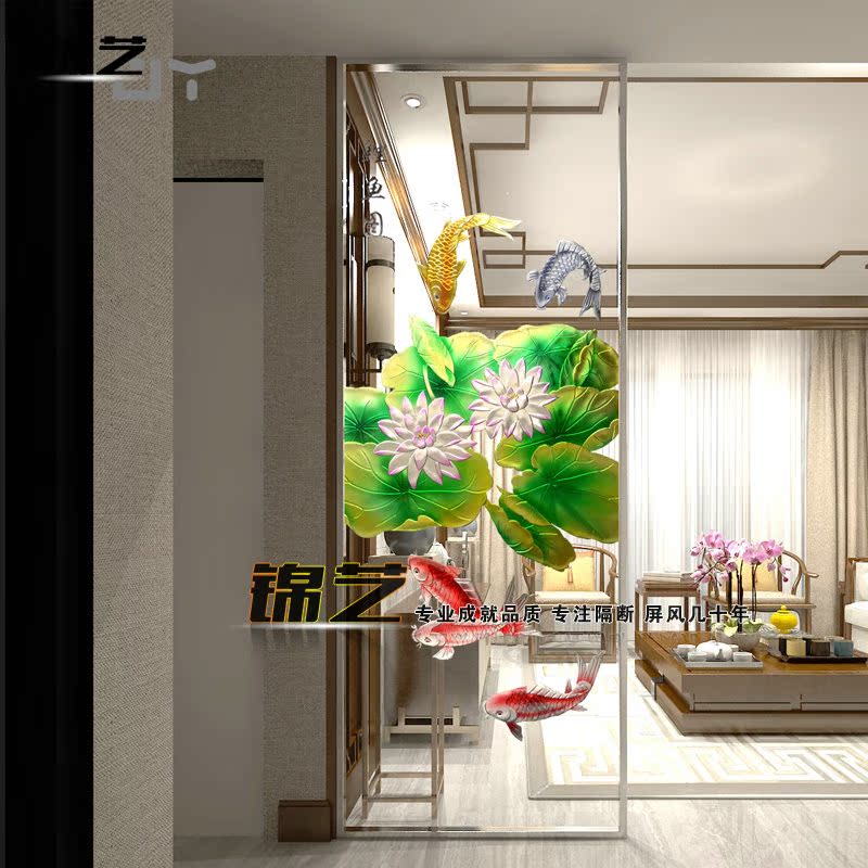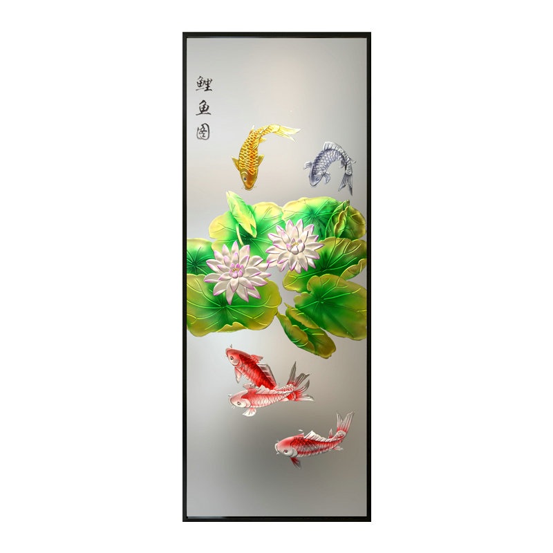 Custom carved art glass tempered frosted modern classical restaurant kitchen partition wall screen lotus carp