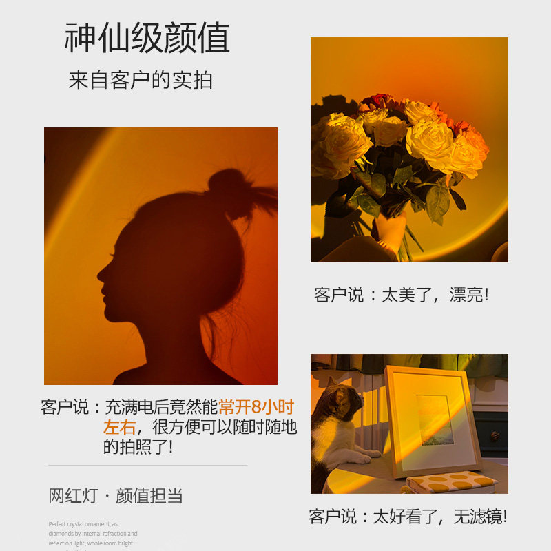 Sunset Lights Charging Desks Light Sunset Day Not Falling Lights Projection Atmosphere Light Bedroom headlights Decorative Mesh Red Photo