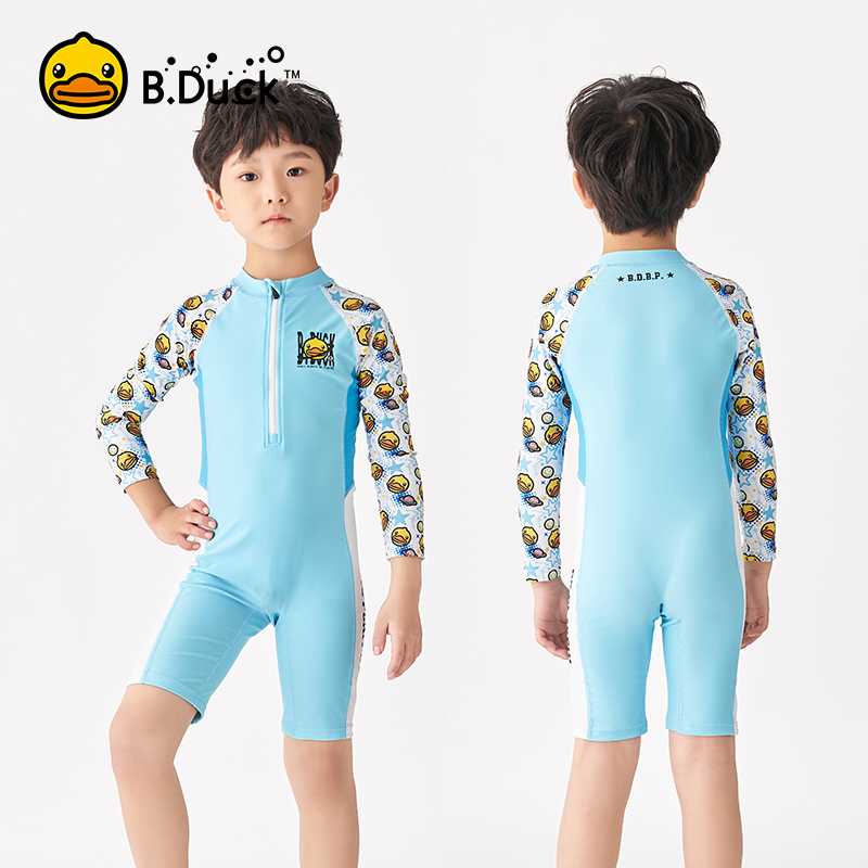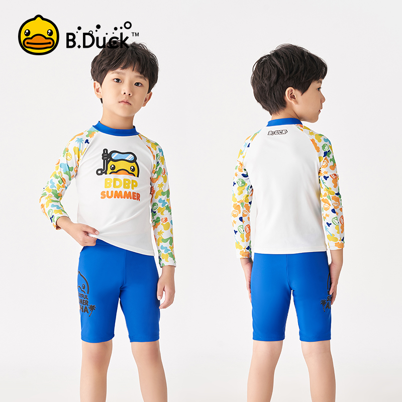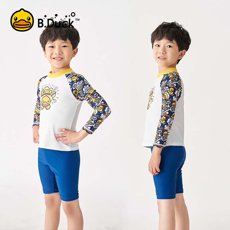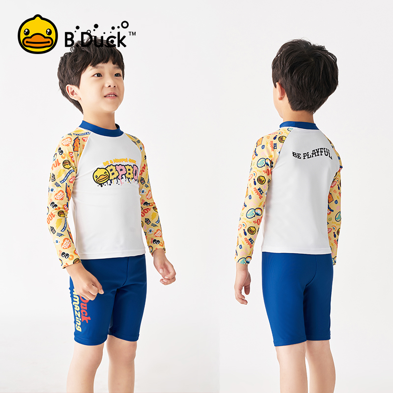 B Duck little yellow Duck children's swimsuit boy split long sleeve sunscreen swimming trunks