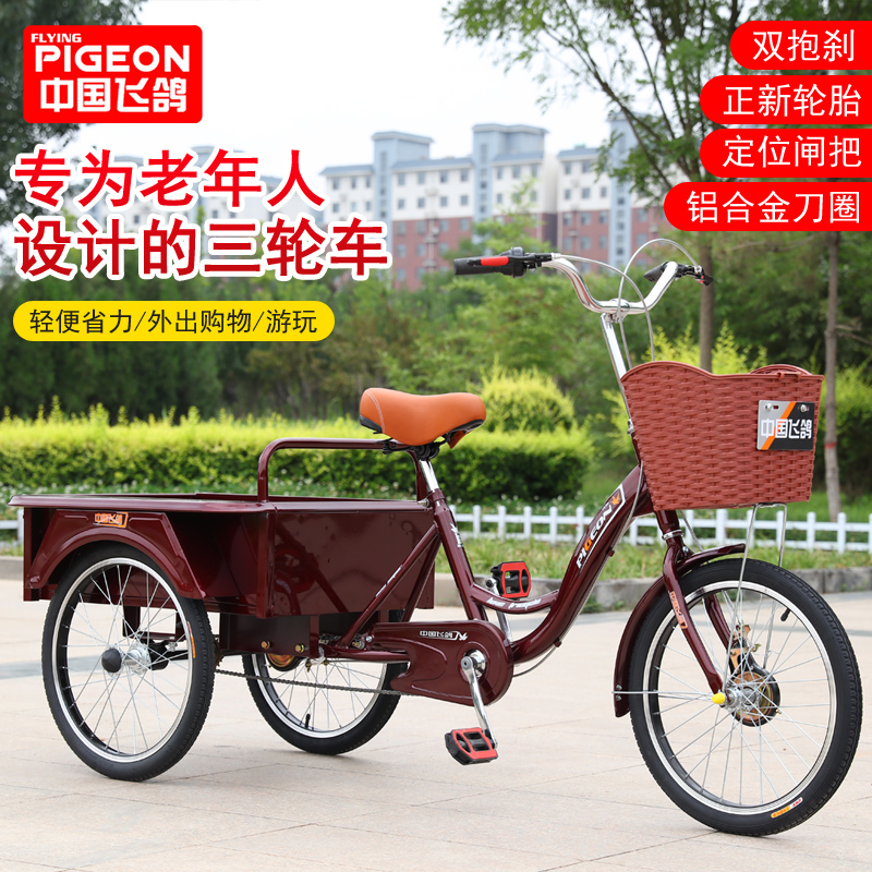 Flying pigeon elderly tricycle rickshaw elderly adult scooter pedal double bike pedal bicycle adult tricycle