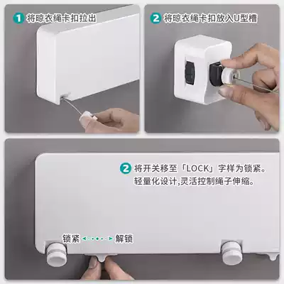 Balcony invisible telescopic non-perforated clothes rope dressing room drying rack clothes drying artifact extended six meters stainless steel wire