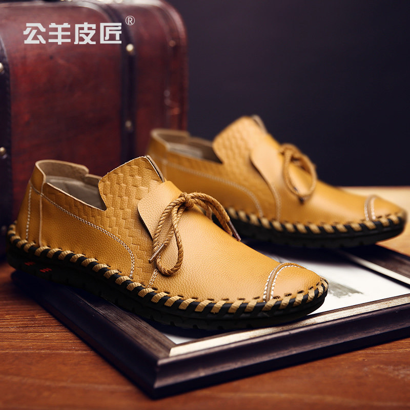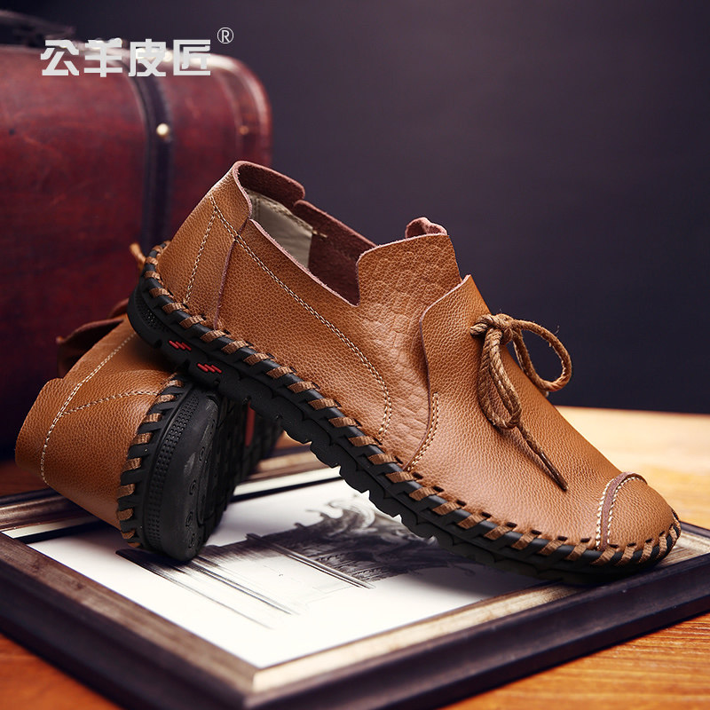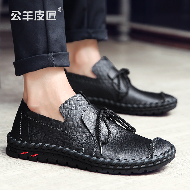 Ram cobbler men's leather shoes 2022 spring trend slip on handmade driving shoes soft bottom casual peas leather shoes