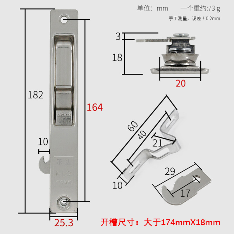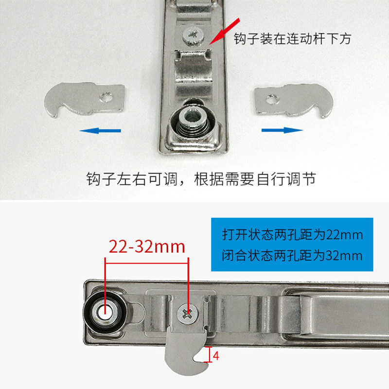 90 Single-sided hook lock Aluminum alloy window hook lock window switch Old-fashioned aluminum alloy push-pull slide stainless steel window lock buckle card