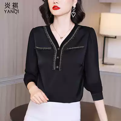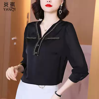 Fashion V-neck black chiffon shirt women's autumn 2021 New Korean design sense temperament jacket foreign pie shirt
