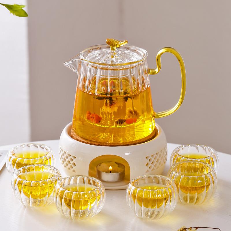 Petal straight pot exquisite base B petal Cup 6 rectangular tray (send 50 candles) Petal straight pot 580ml petal Cup 6 petal straight pot exquisite base B