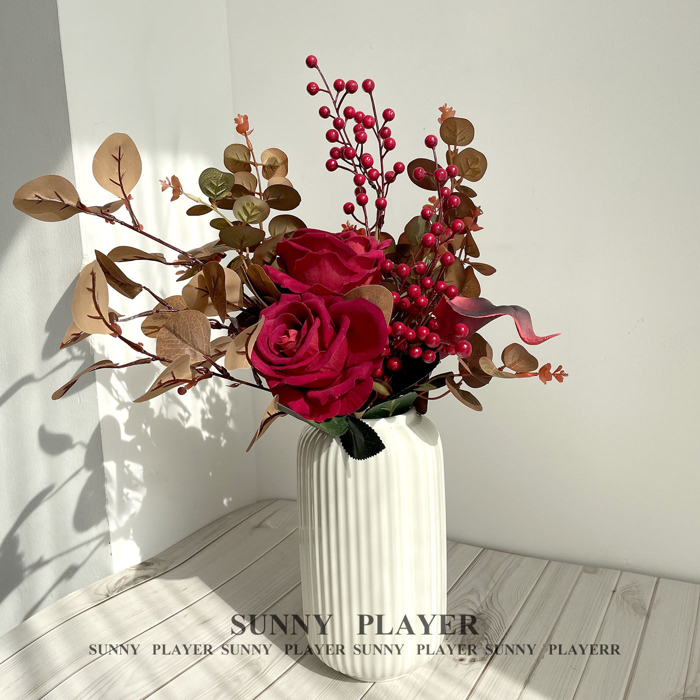 Simulation Bouquet Indoor Table Placement Tea Table Decoration Hem Living-room Silk Flower Fake Flowers Red Rose Suit Light Lavish