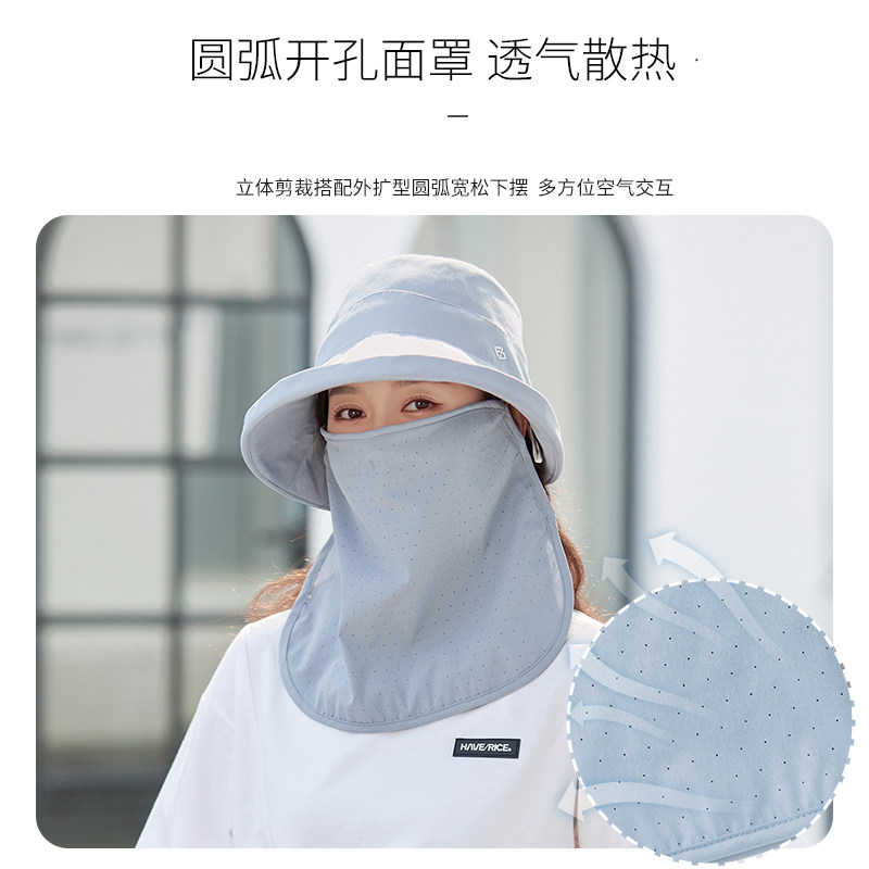 Fancet sun protection hat women's summer neck protection anti-UV sun hat detachable face mask large brim face-covering sun hat
