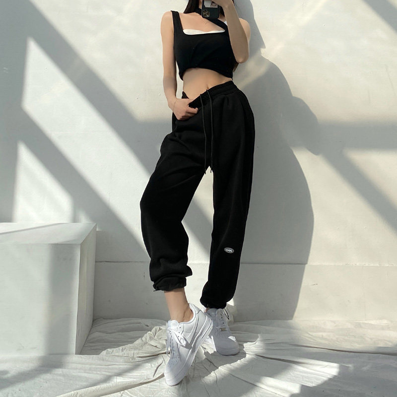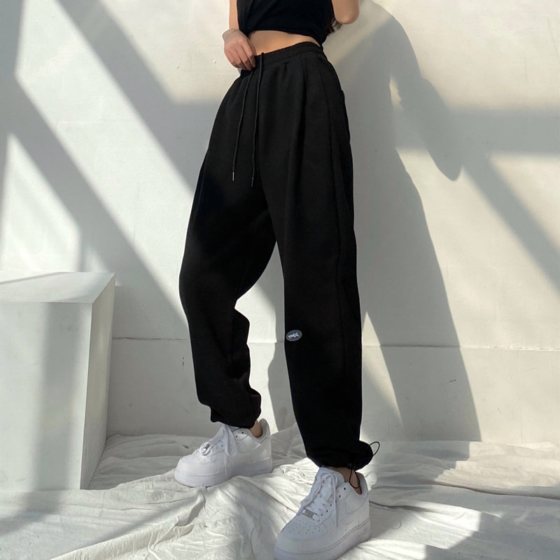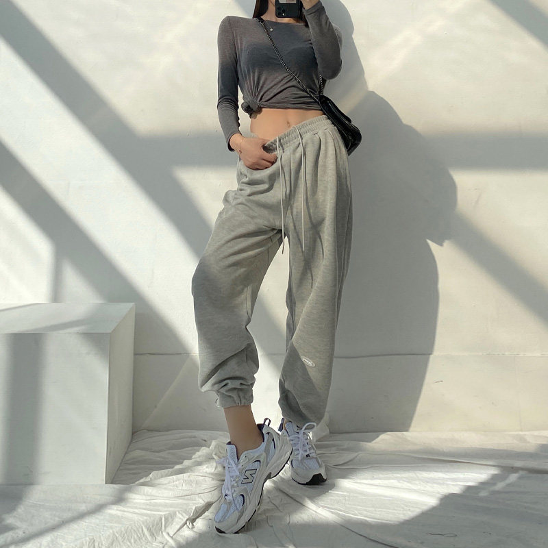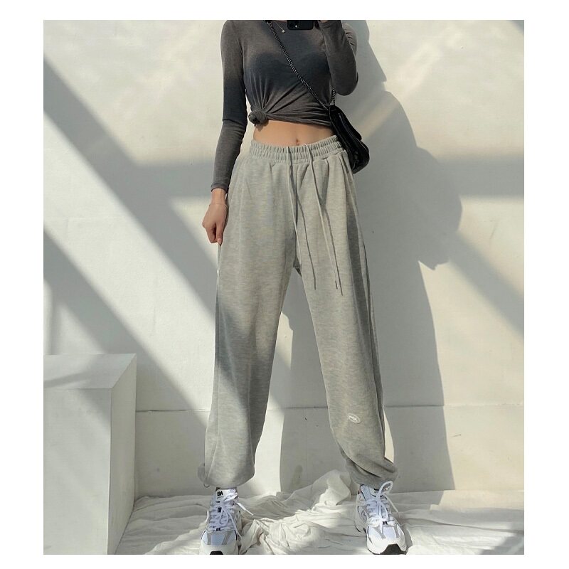 Korean Grey Sports Pants Woman Spring Autumn 2022 New Loose Beam Feet High Waist Pituitary Straight Drum Pure Cotton Casual Thick Cotton Pants