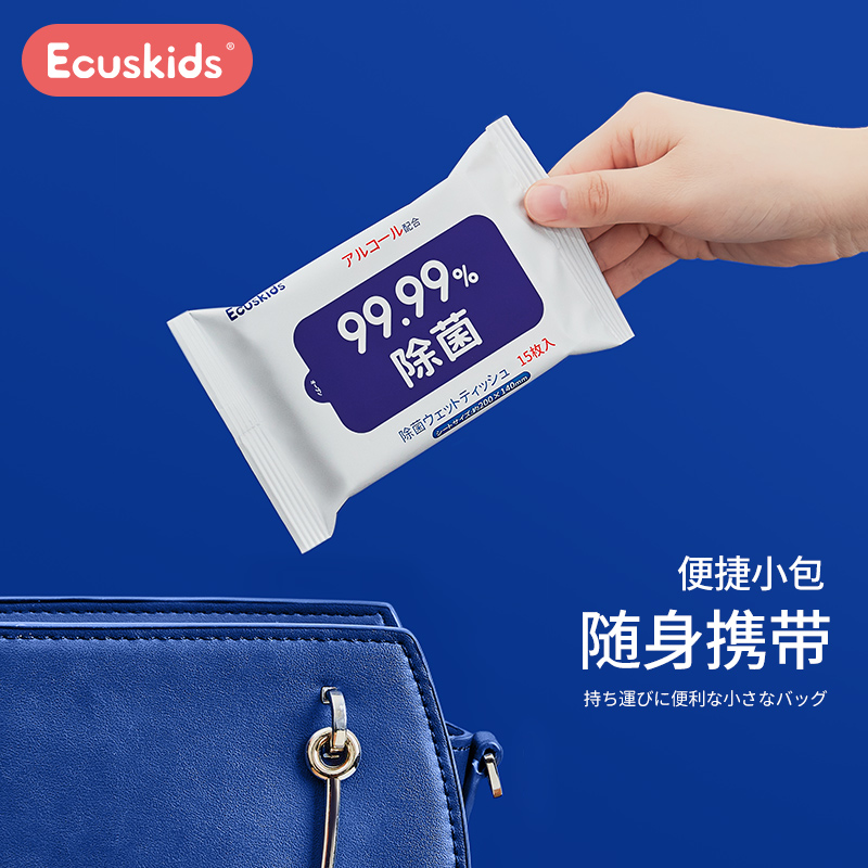 Japan ecuskids disinfection wipes baby sterilization and sterilization portable small bag portable alcohol wipes 15 pumps * 6 packs