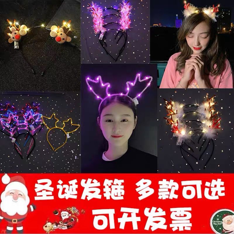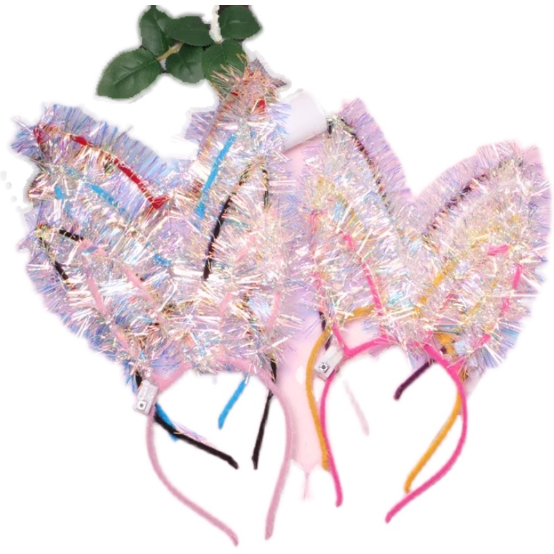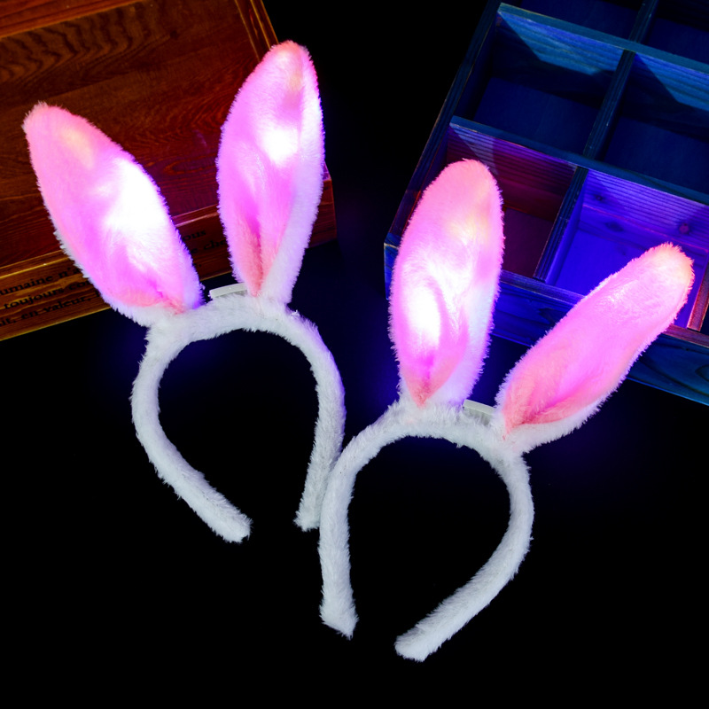 Luminous feather rabbit ear hair feather hair wreath headdress glowing hoop princess props night market toy view